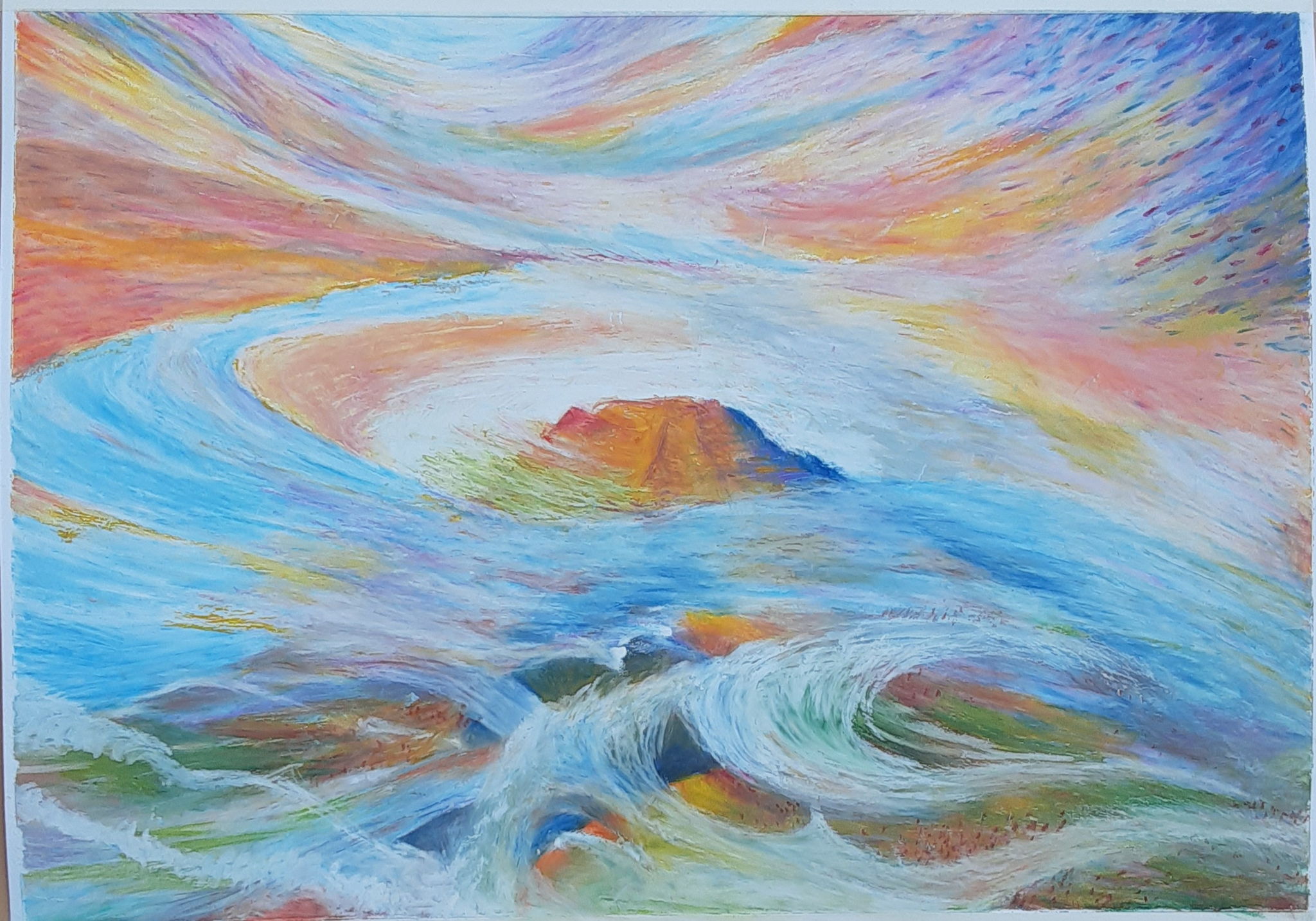 長距離ドライブで訪れた白樺湖の綺麗な紅葉を描きました。