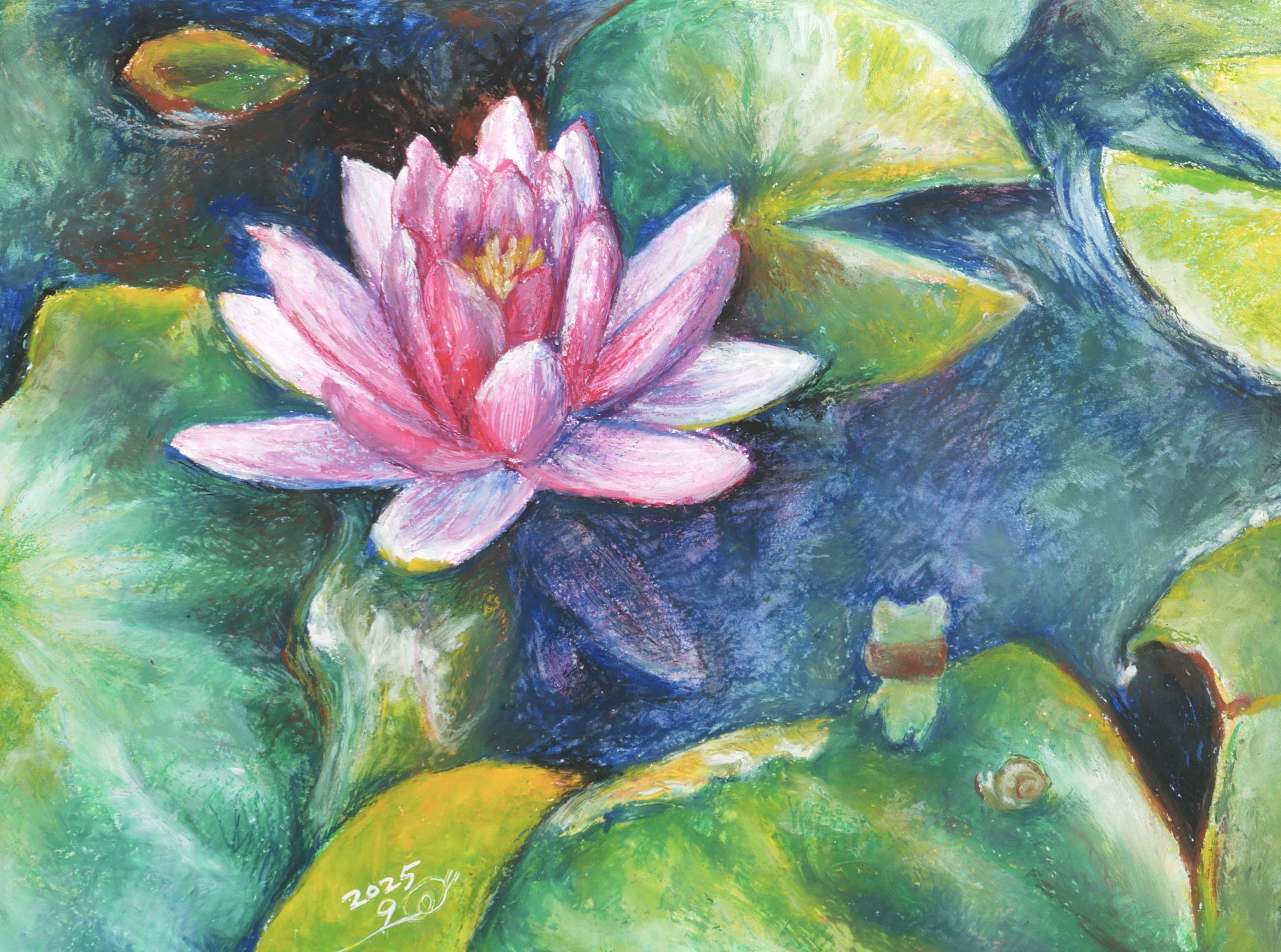 アートクレヨンなら、窓に夕焼けの入る僅かな時間のスケッチと、壁の質感の表現が叶うのではと思い、描いてみました。