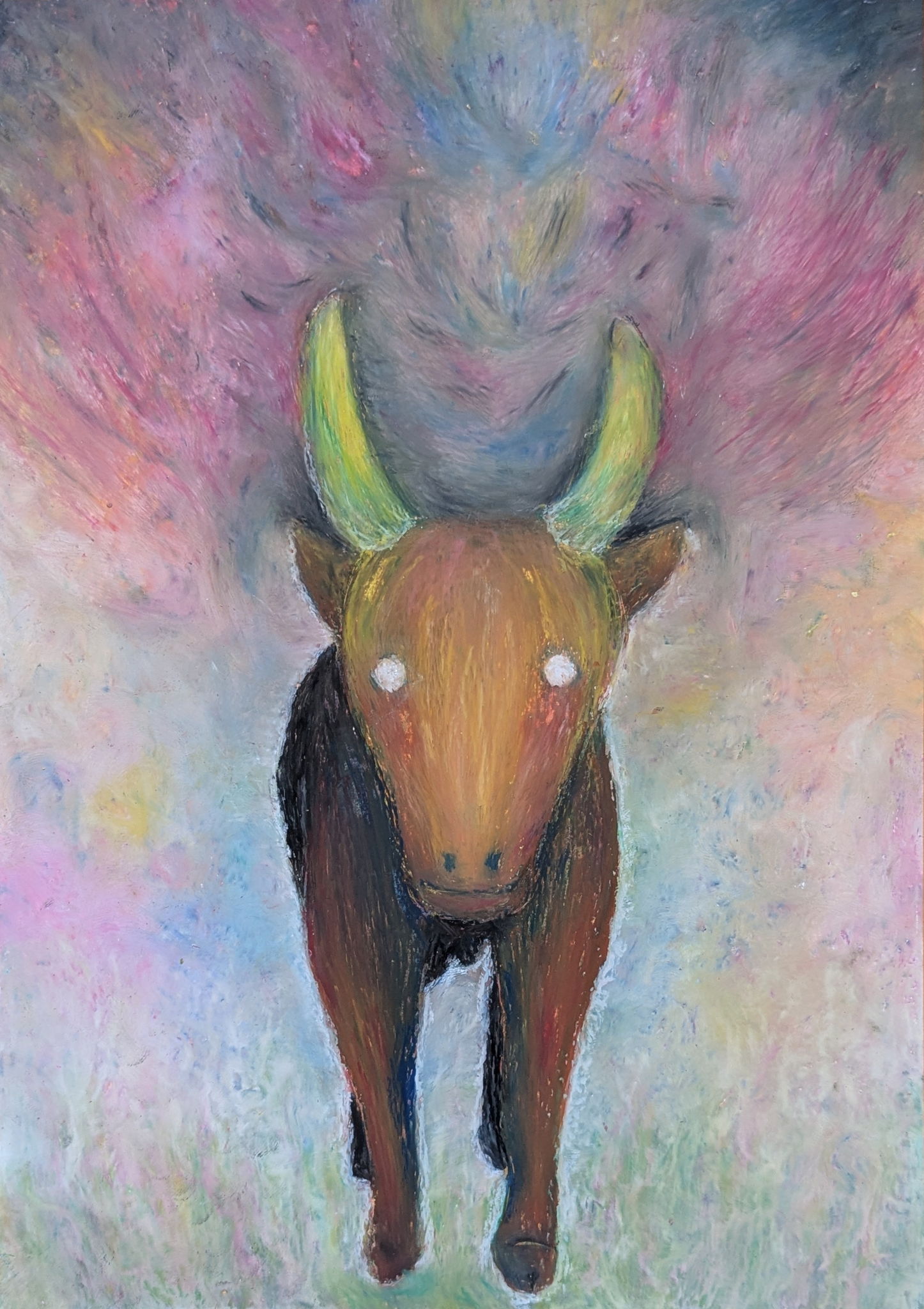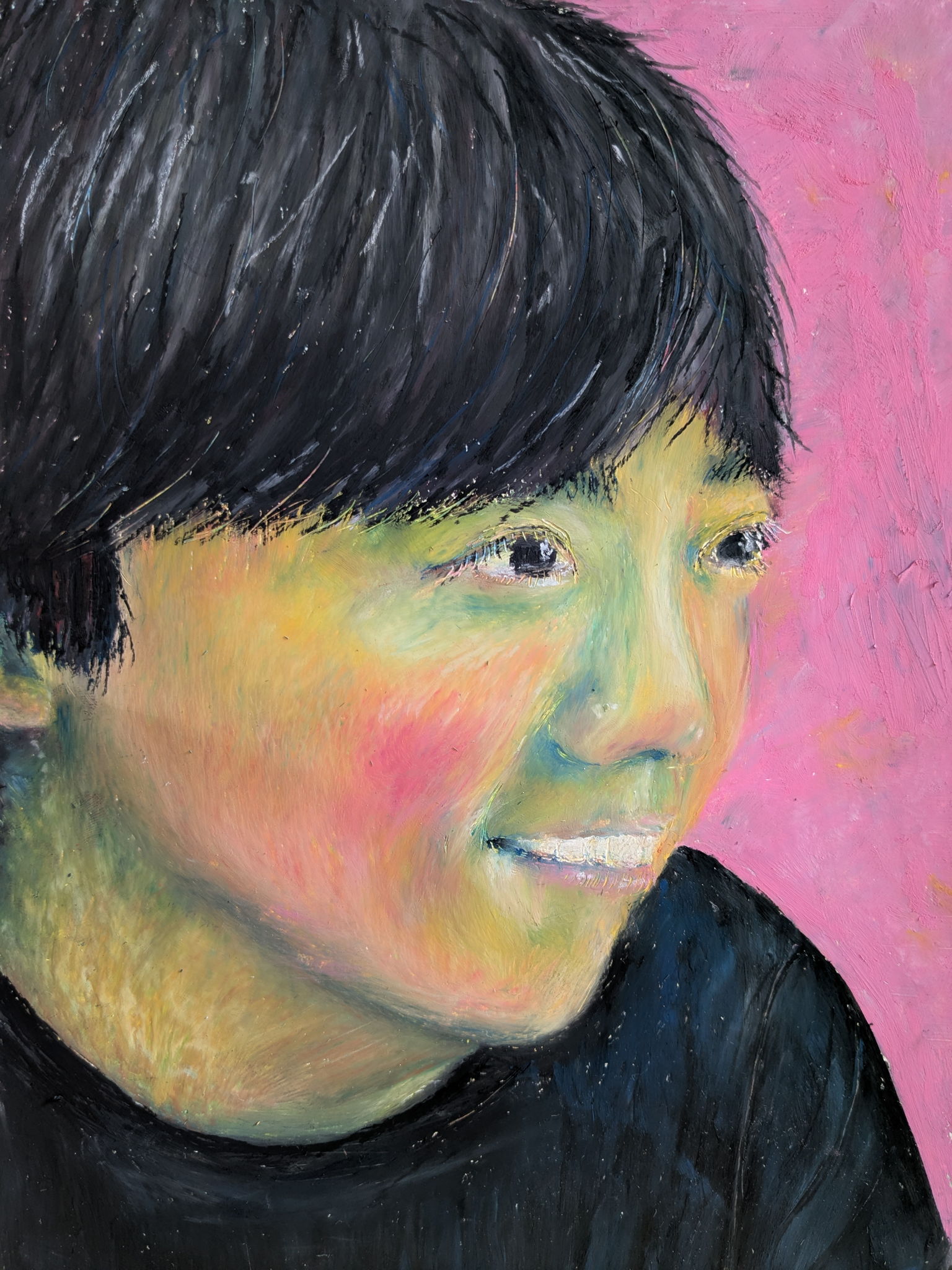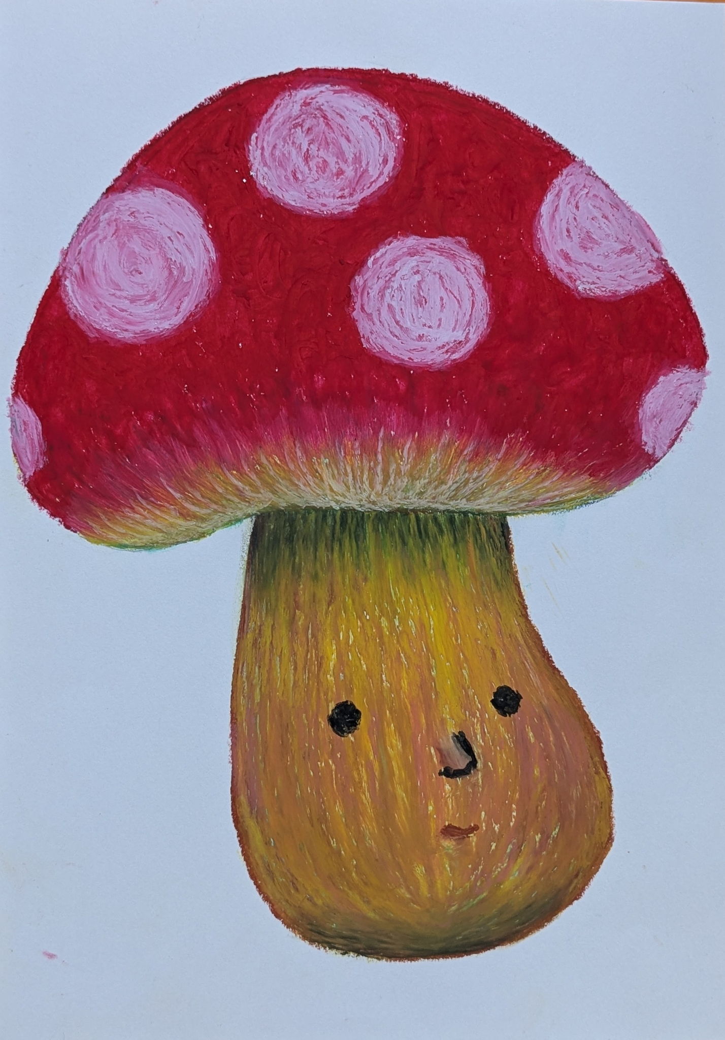色んなクレヨンの使い方がしてみたくて、点で描いたり、削ってみたり、塗りつぶしてみたり…ただただ8色のクレヨンを楽しんでみました。