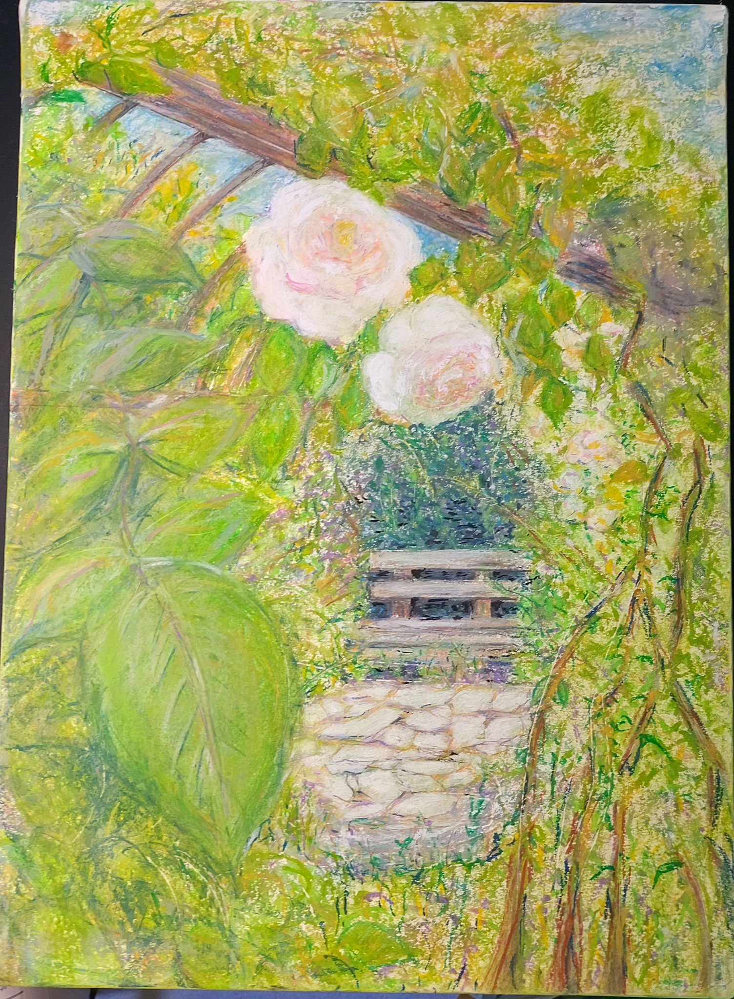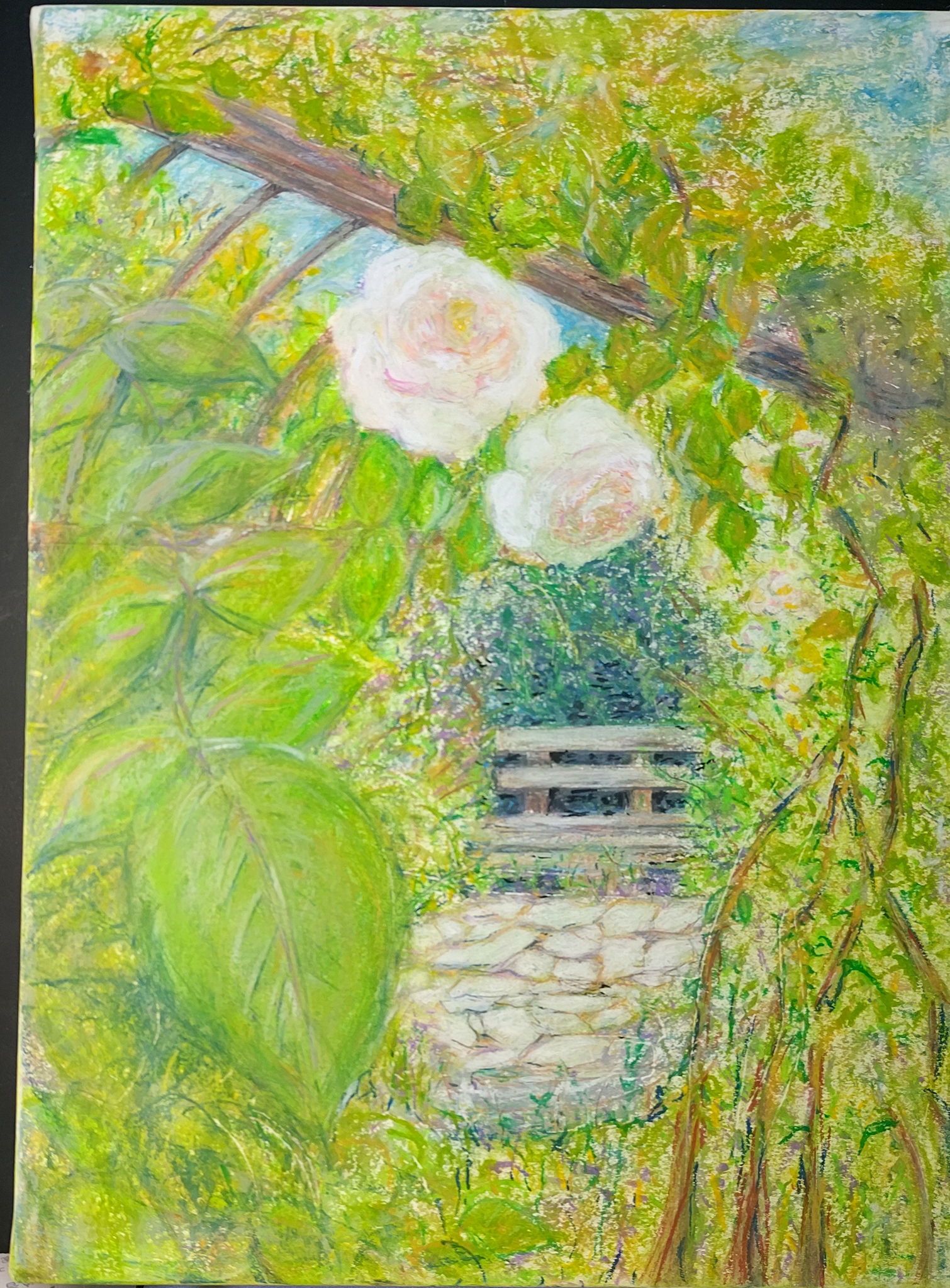 奥まったベンチにフォーカスをあてた絵を描きました。