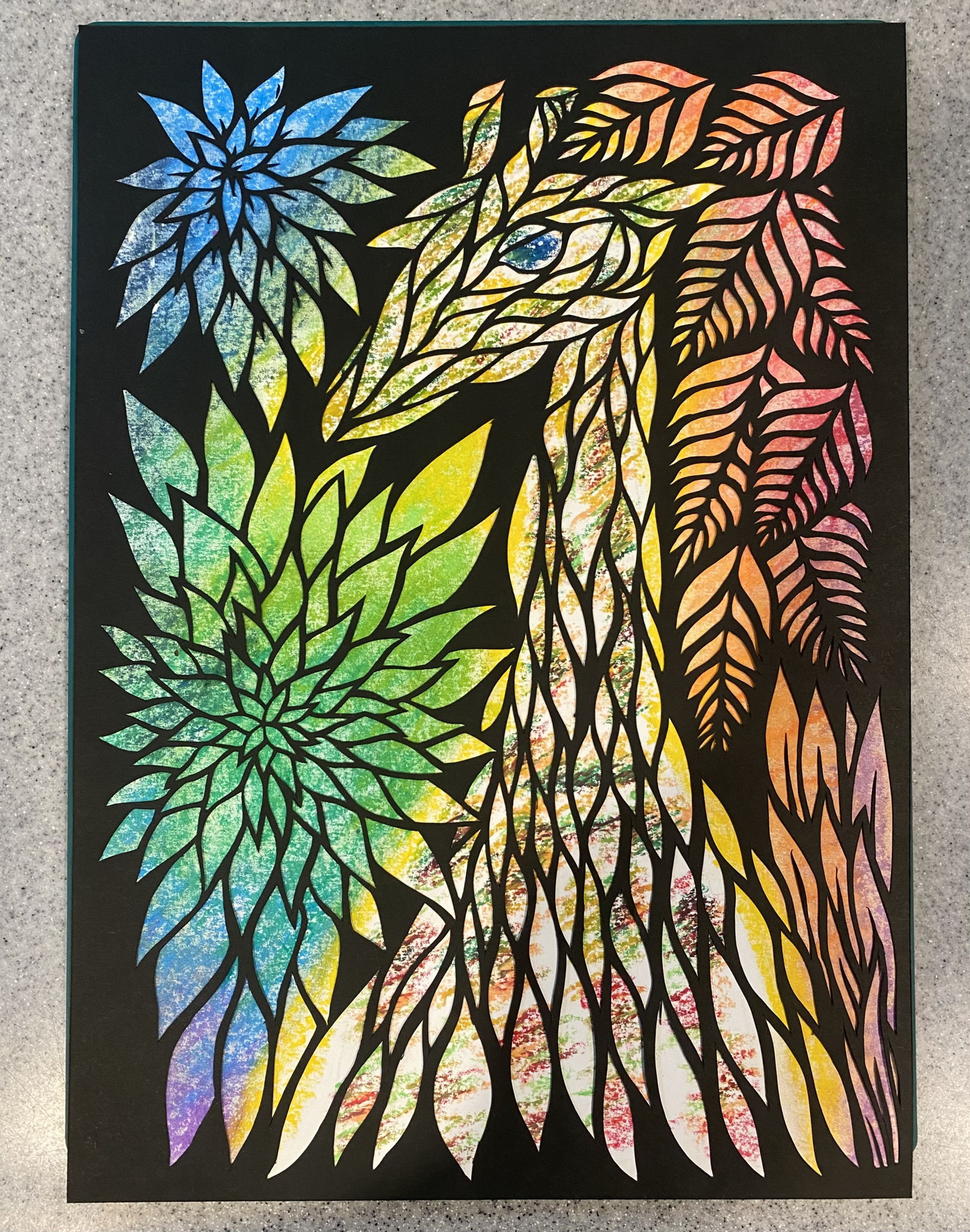 透き通る美しさと、水中の世界を切り絵と合わせて描いています。