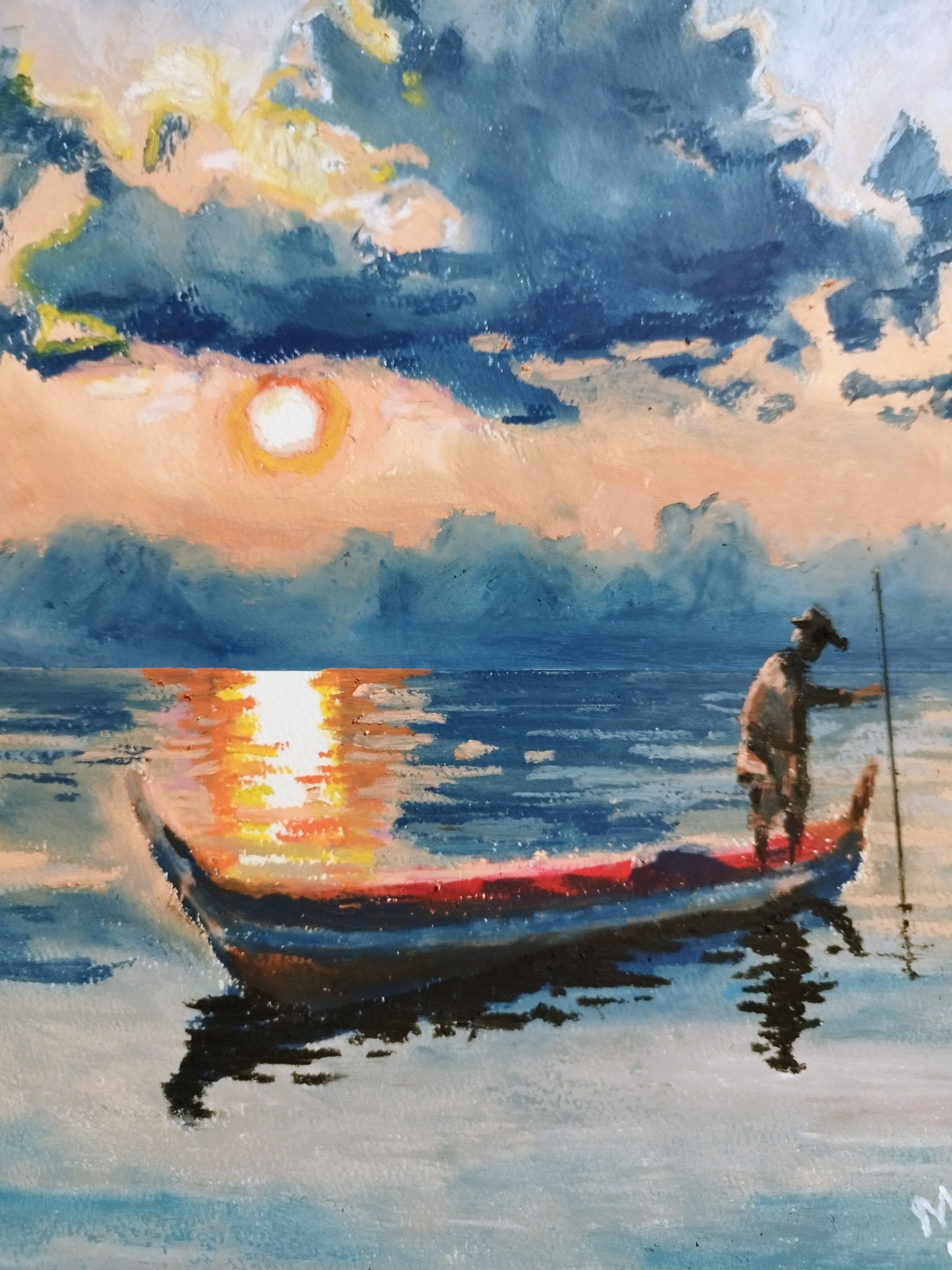 彼のボートにたくさん魚が捕れていようがいまいが、心に実りある日であれば、きっと明日もいい日になる。