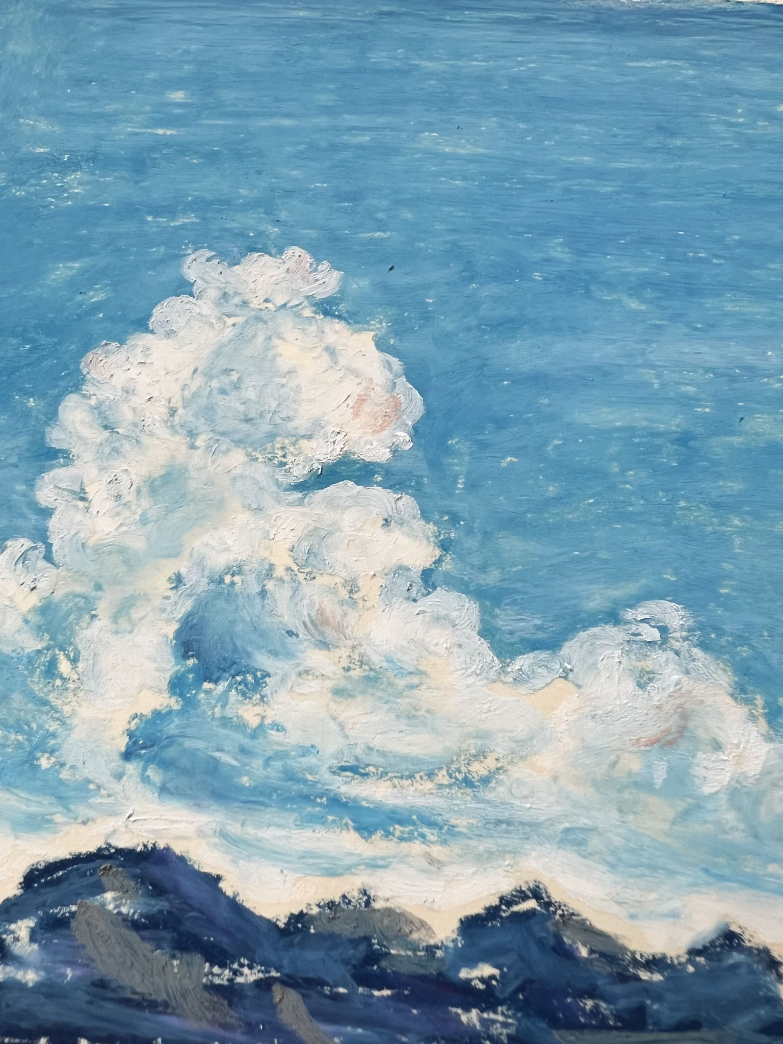 でも都会で暮らしていた時はそのあたり前には気付かずで、地元に戻ってきて山の見える日々がどれだけ癒しだったか気付かされた。緑が芽吹いてきたり紅葉を感じたり、雲に覆われ山が隠れてしまうと山は雪かと心配したり、あたり前にあることが実は尊いことかなと。私がよく見る山の景色でそれはよく晴れた日の風景を描いてみました。