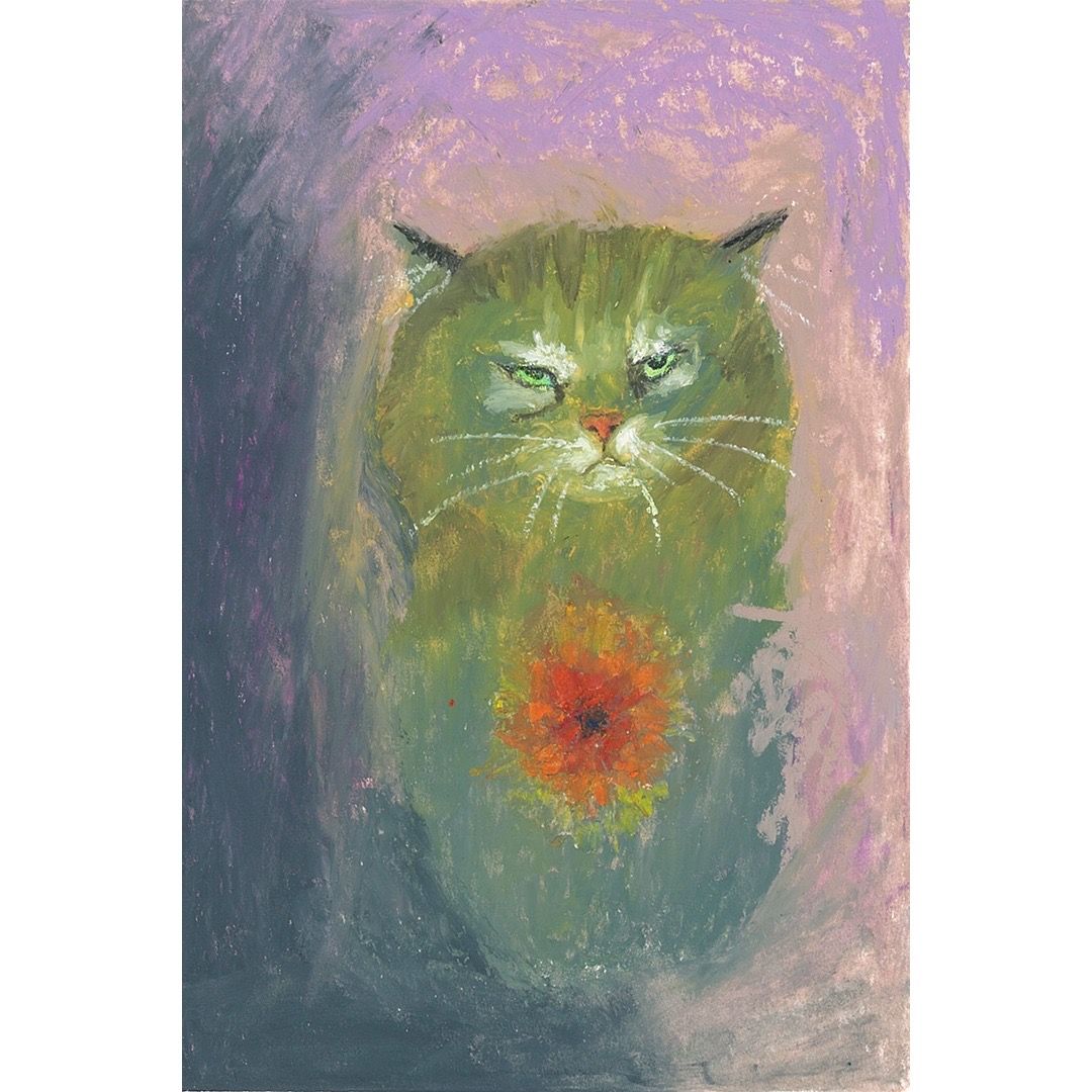 猫の静かな眼差しは「悟りの象徴」であり、沈黙の中に潜む永遠の意識を表しています。