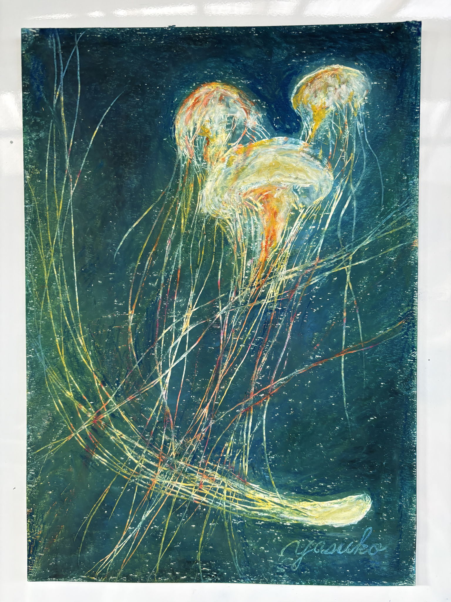 水族館で幻想的な風景を目にしました。クラゲが、ライトに照らされ舞う姿です。