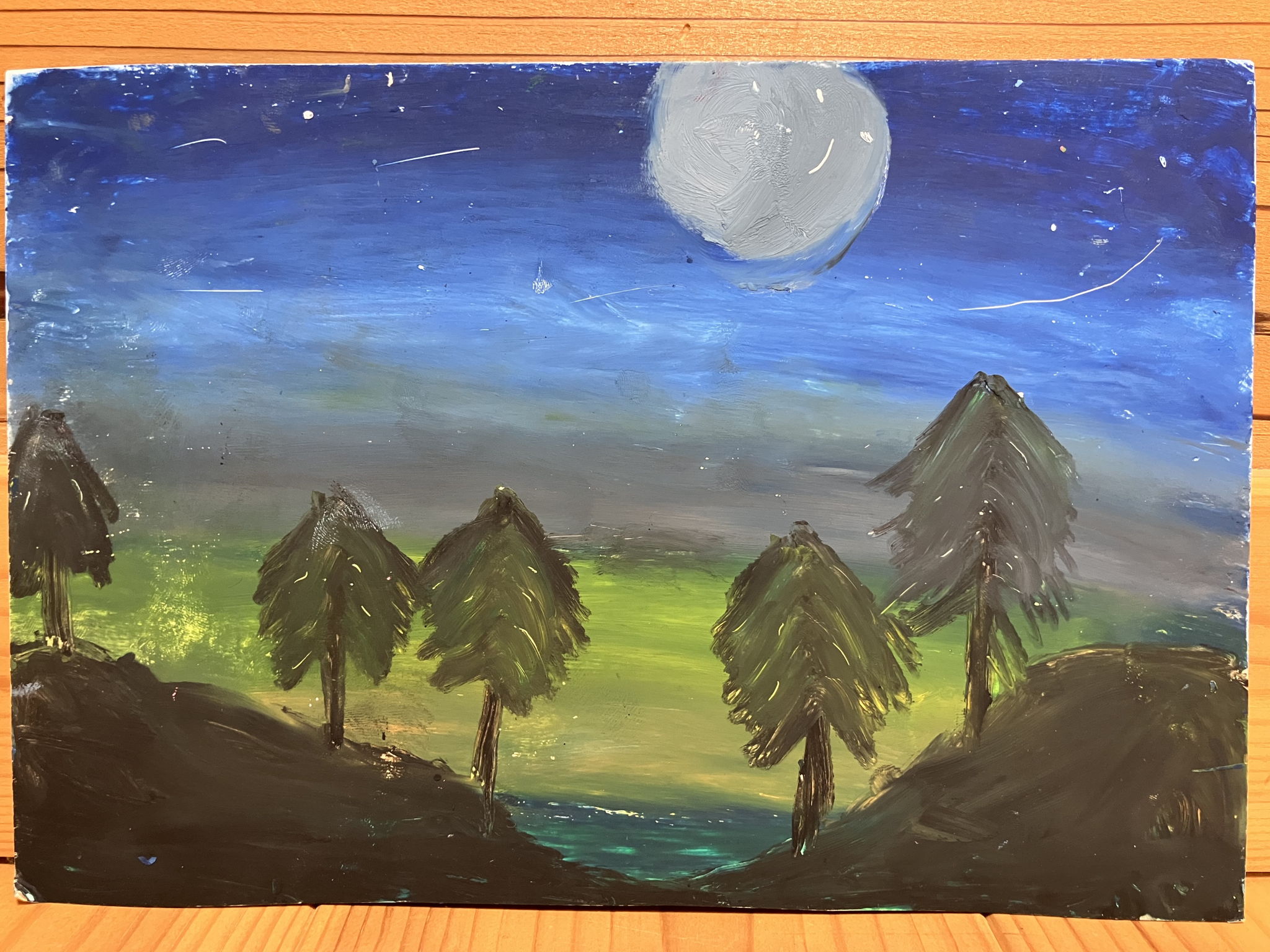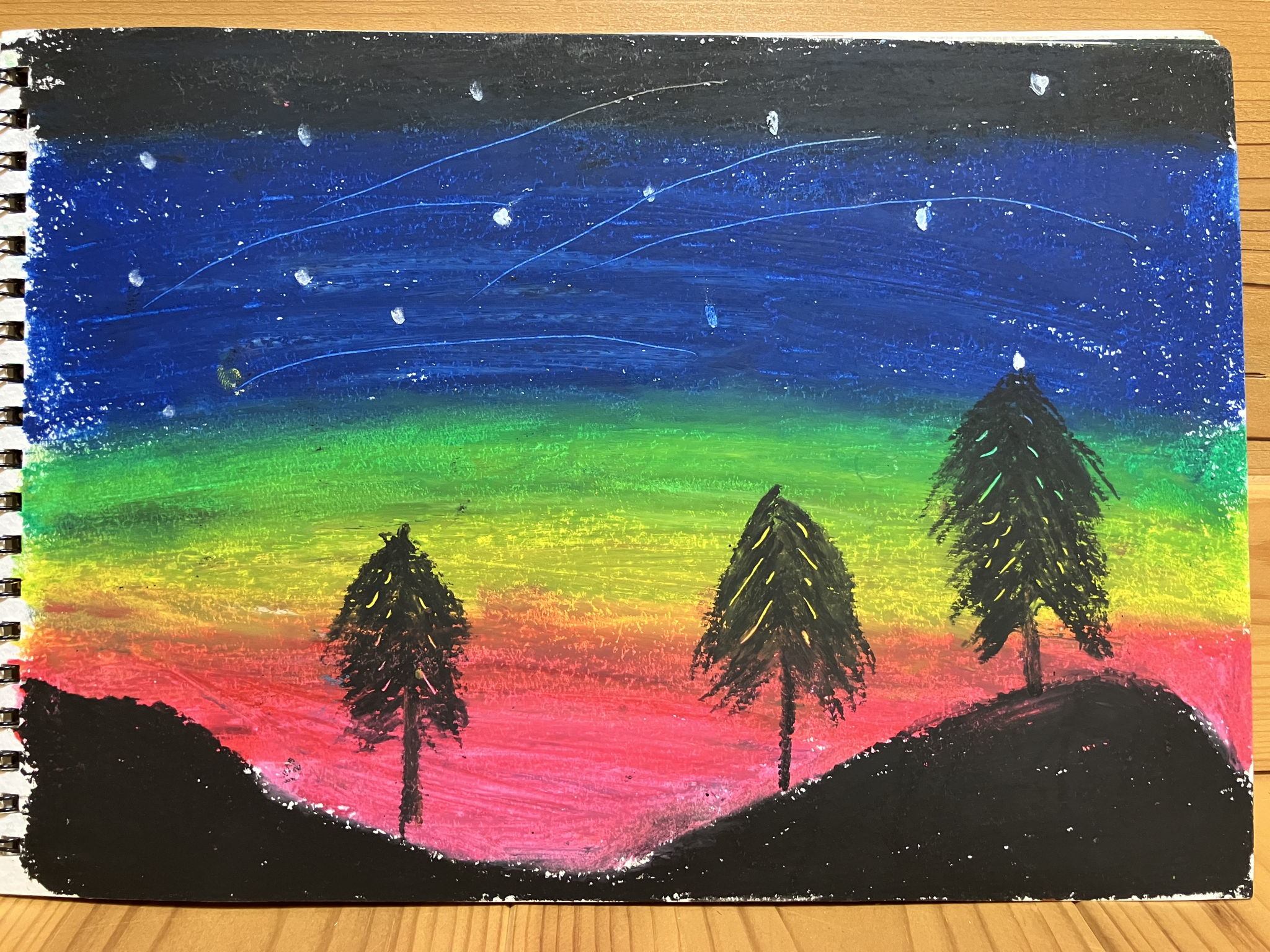 クレヨンの特徴を活かしてグラデーションを頑張りました。