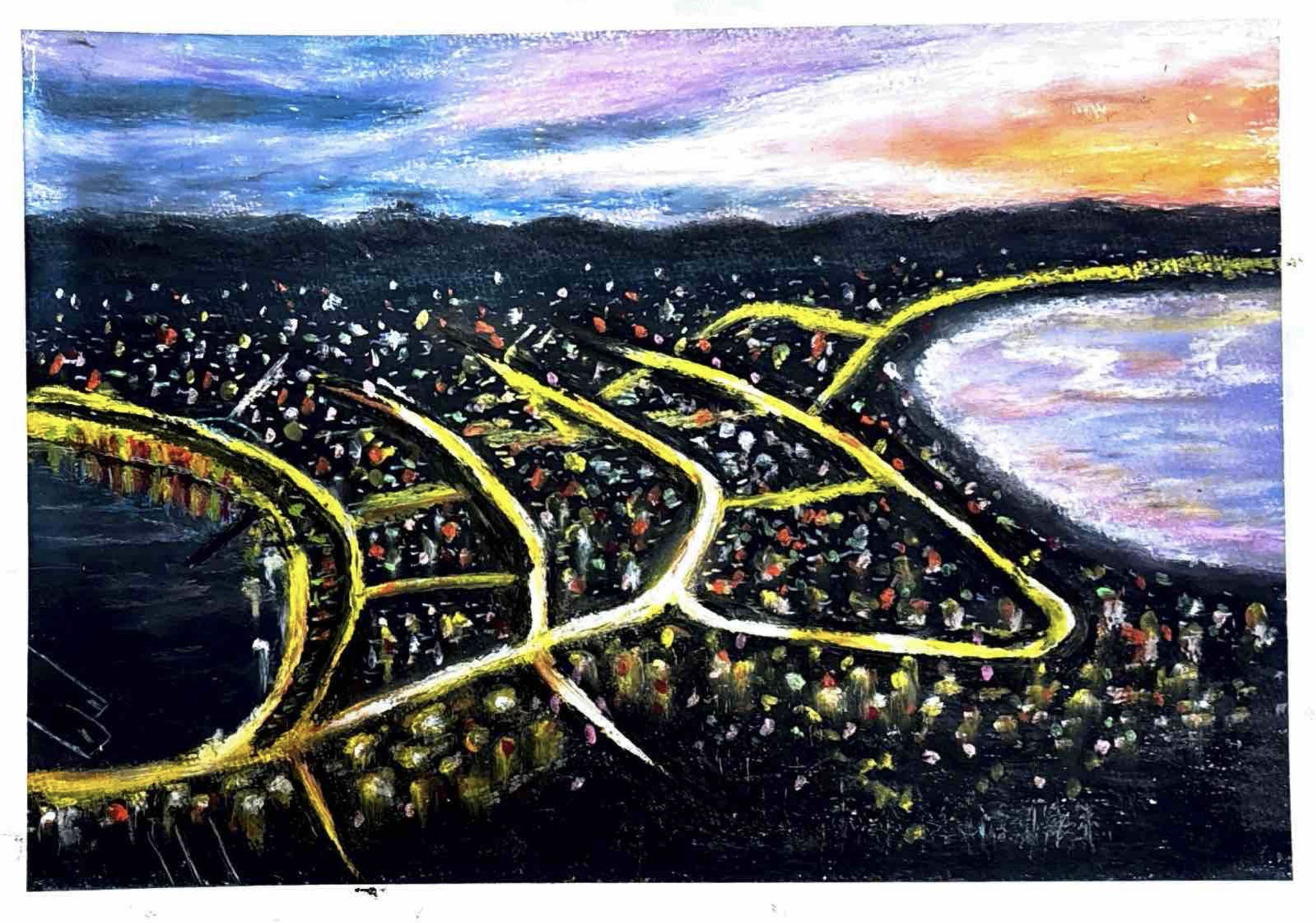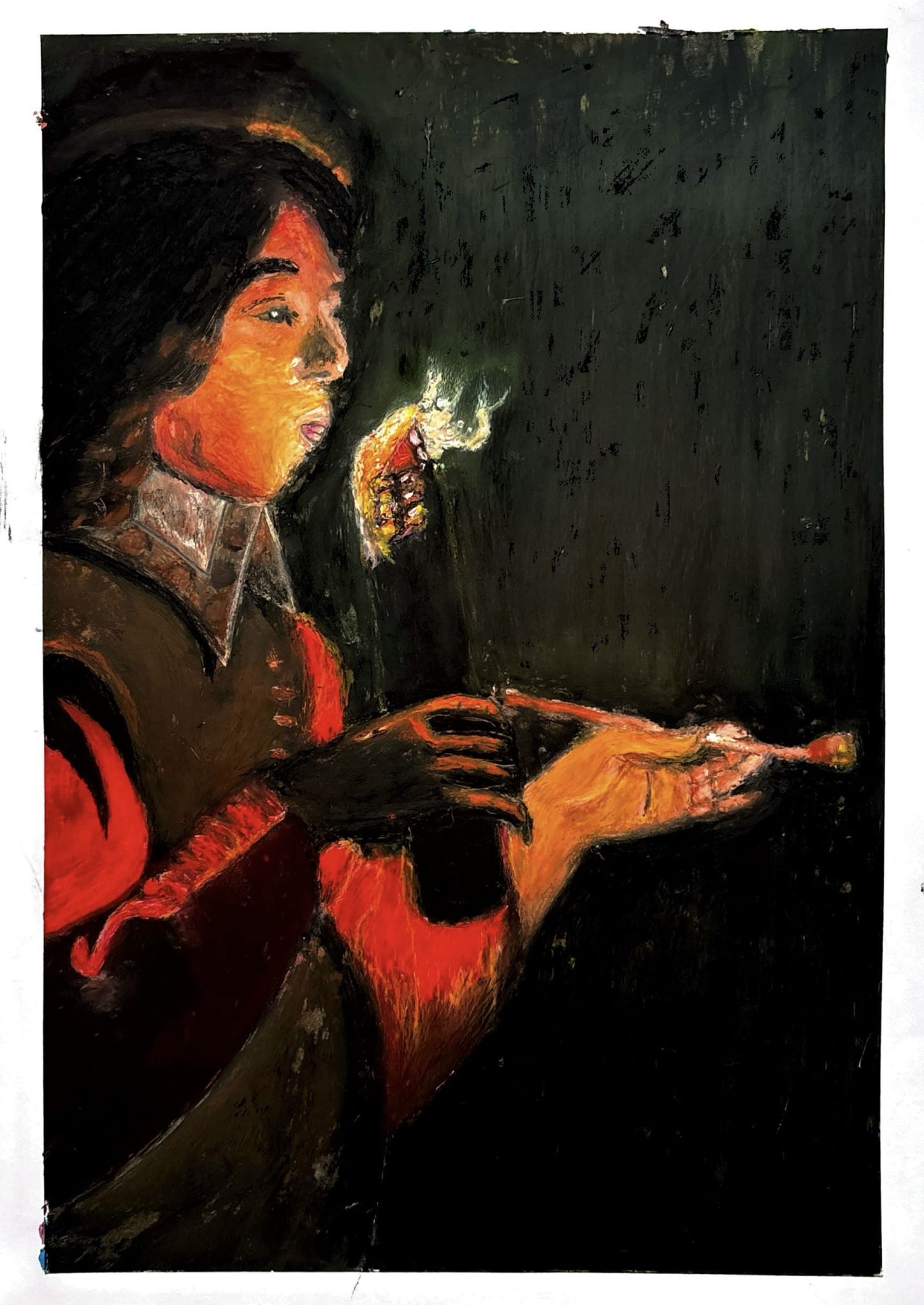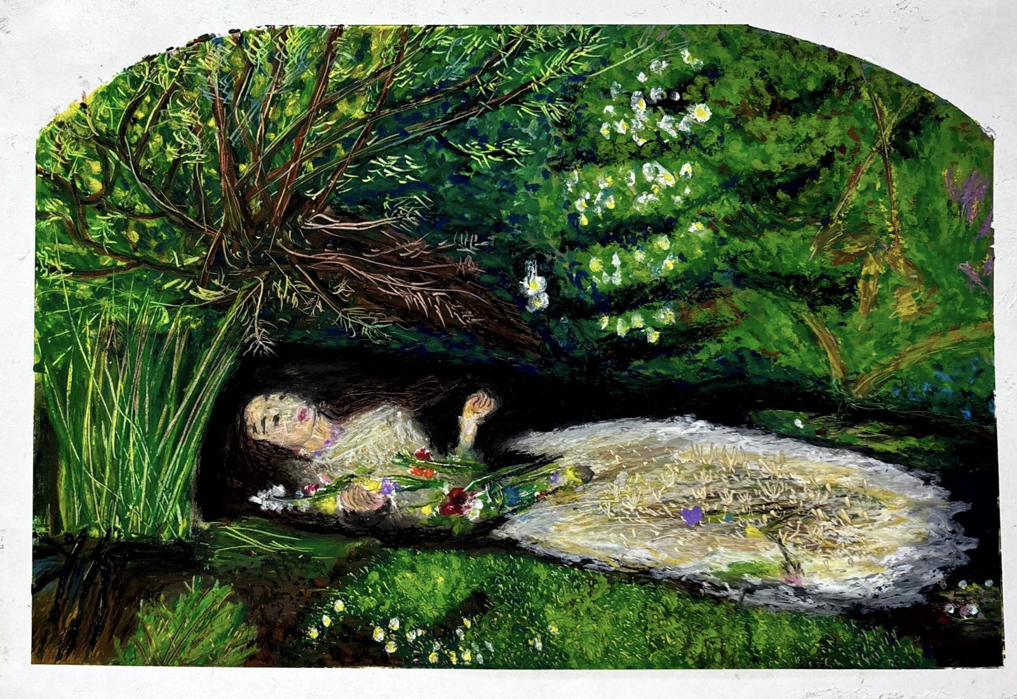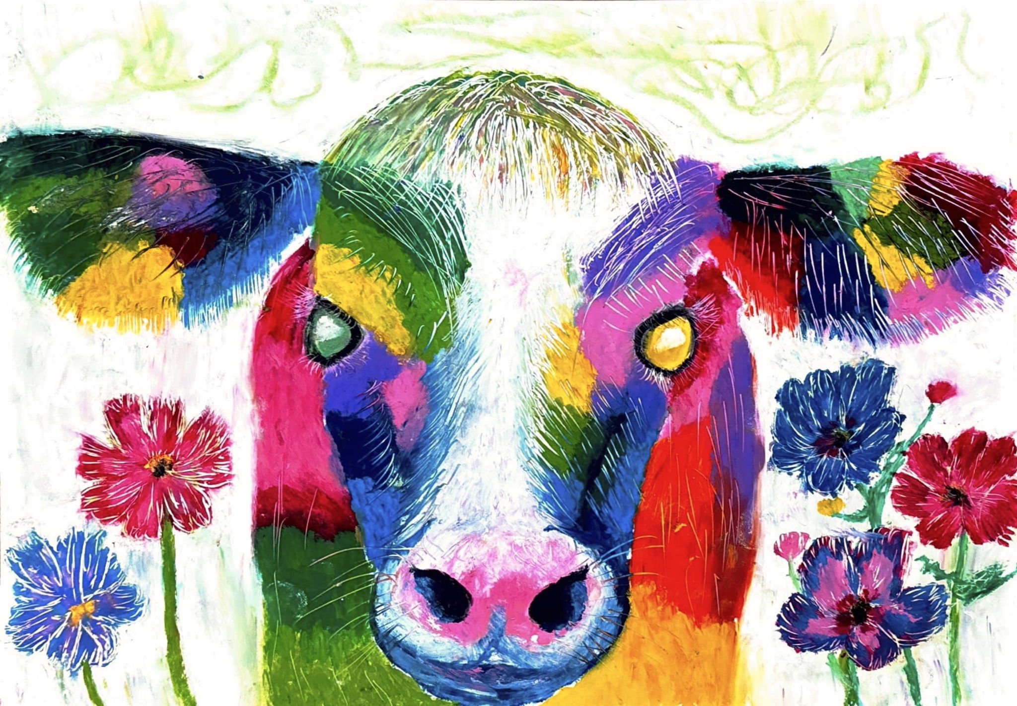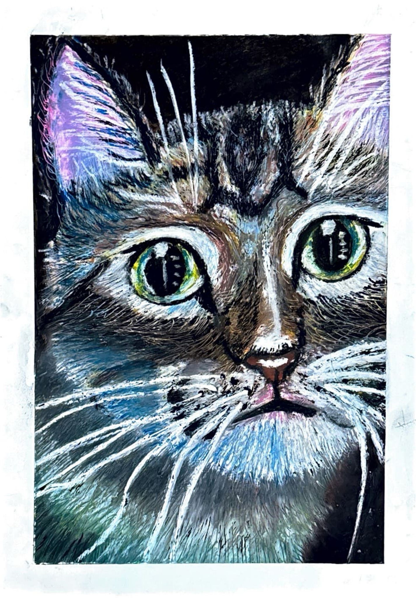 見て下さる方たちに、ニジマスのサイズ感やリアルさなどをより伝えたくて、紙粘土でかたちを作り、アートクレヨンで色づけました。