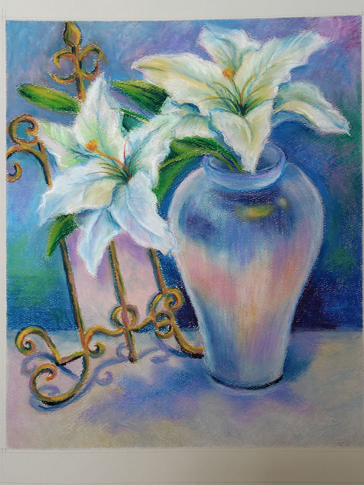 地元にある池です。鯉がゆったり泳ぐ池、水流が作る渦、泡、光の調子などが醸し出す美しい水面を表現したいと思って描きました。