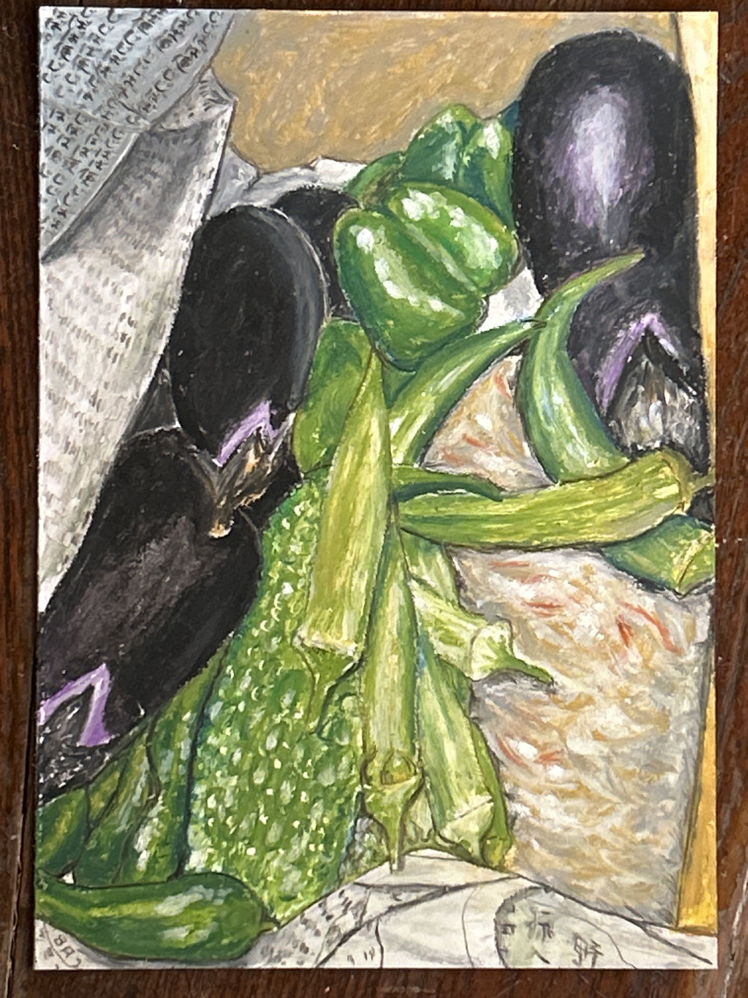 鯉のいる池に足を入れている絵にならないように気をつけて描きました笑