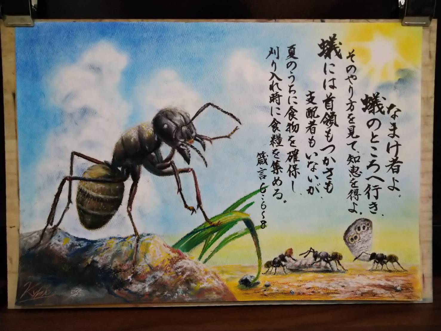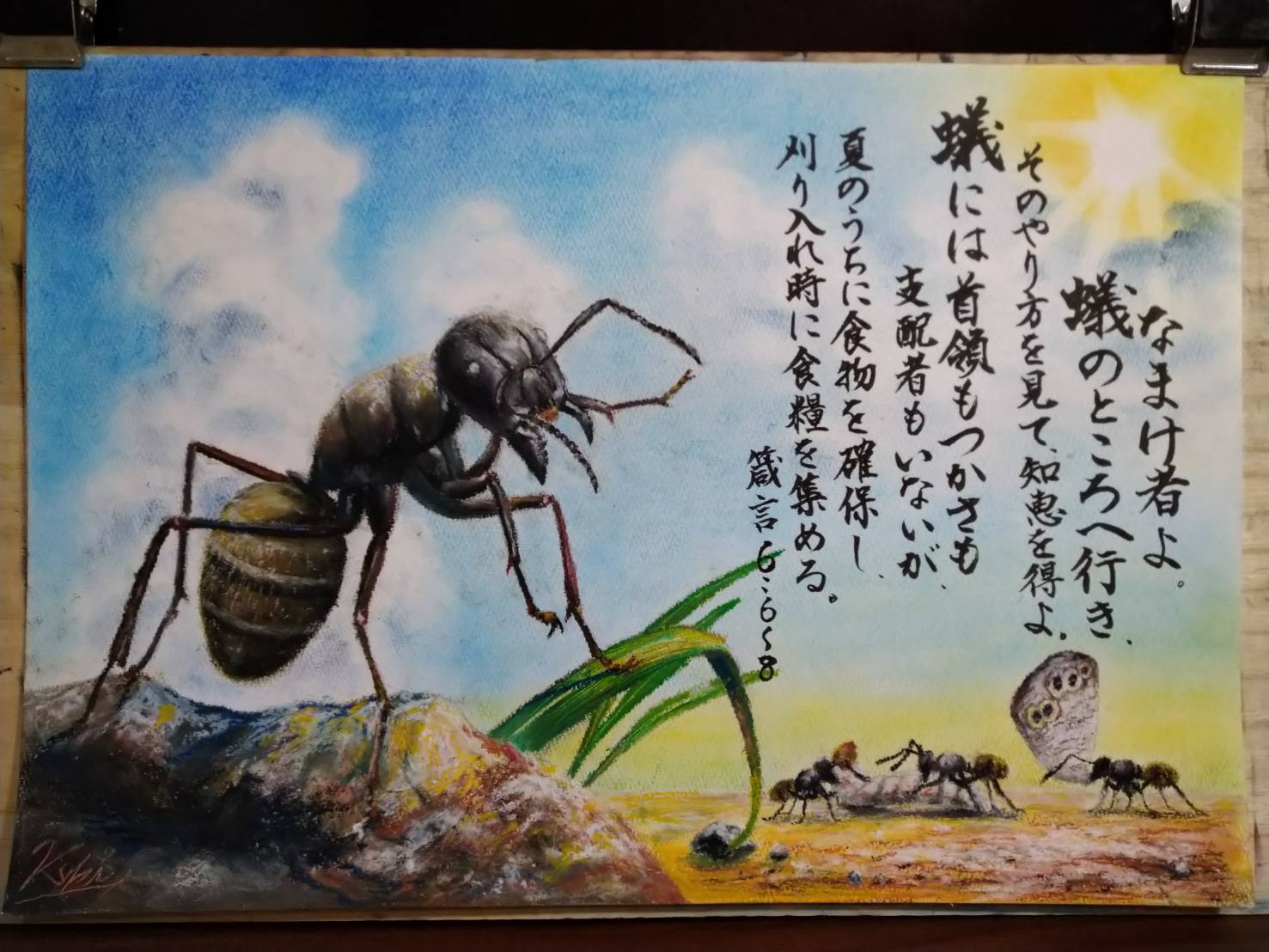 聖書の中に蟻が出てくるので、一緒に描いてみました。