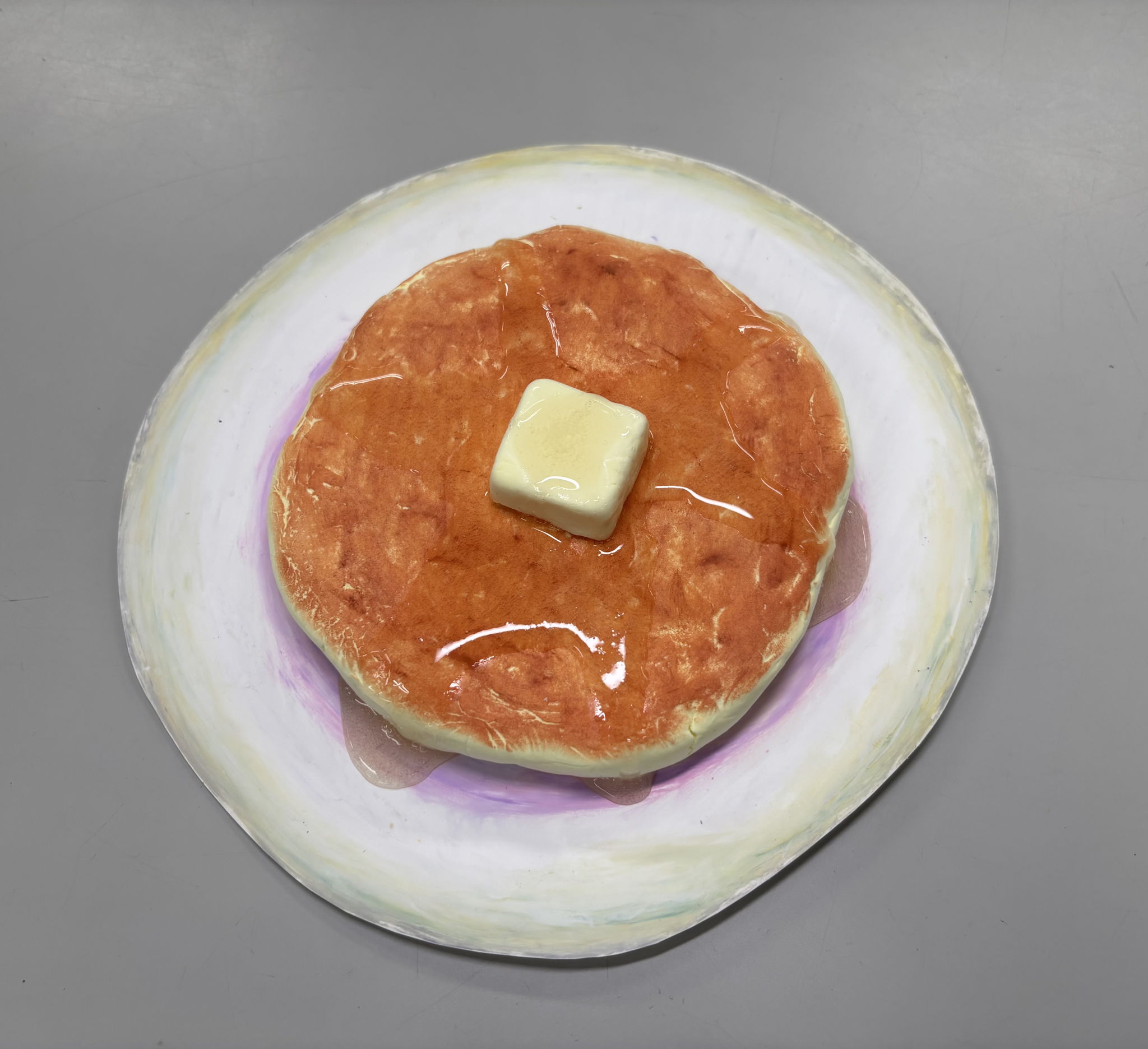 リアルなホットケーキと対象な、幻想的なお皿がポイントです!