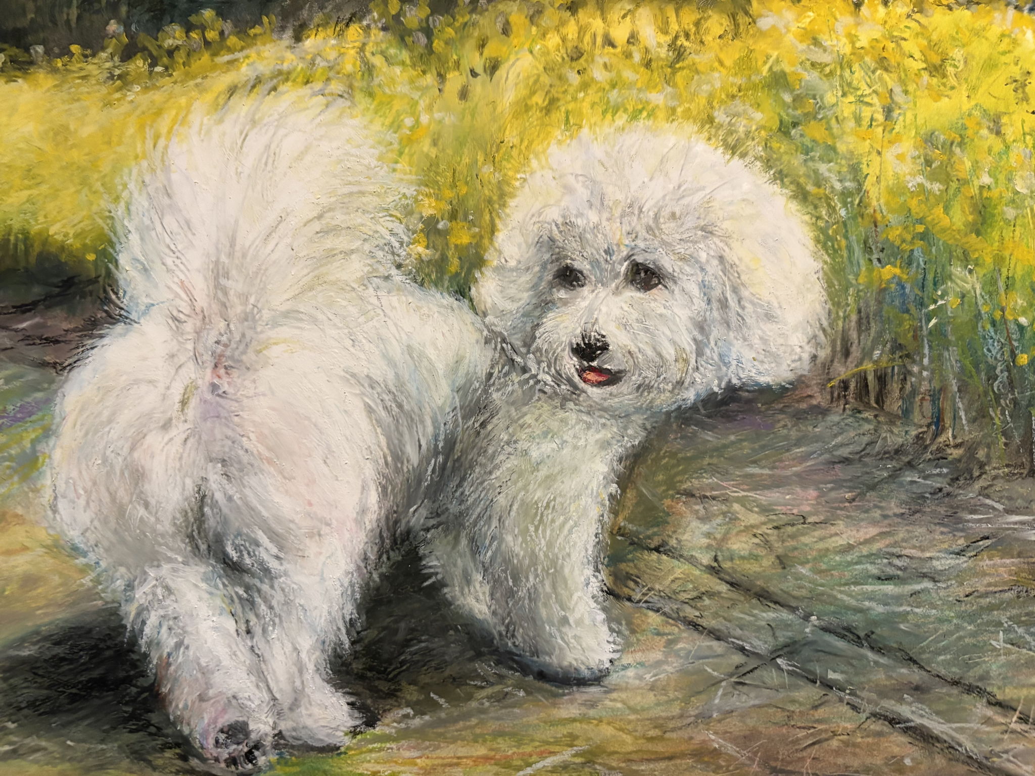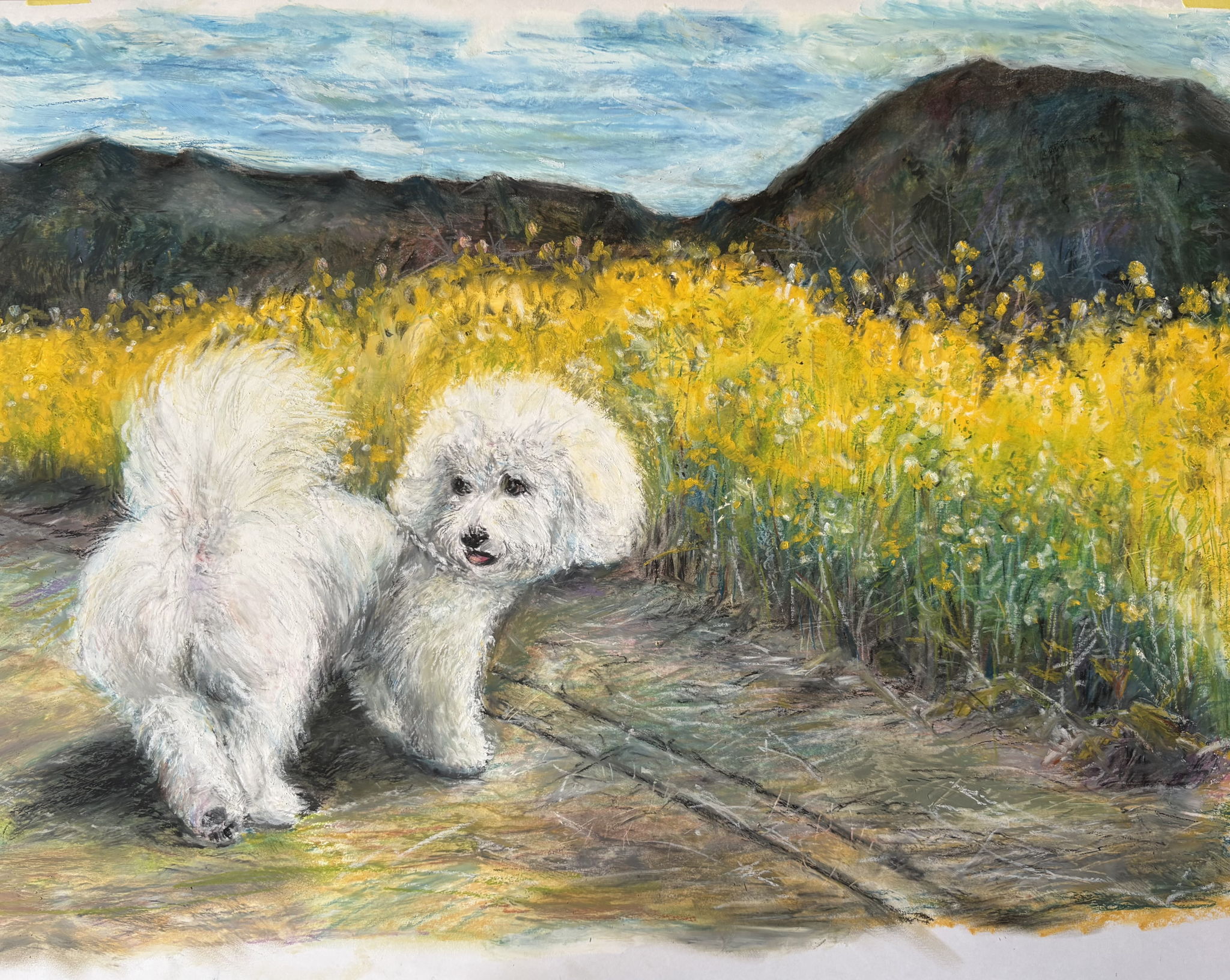少し遠出をして家族と広い公園へ行きました。初めての場所に愛犬は駆け出し。ゆらゆらする菜の花の元へ。じっと見ていると思ったら振り返りこの表情!