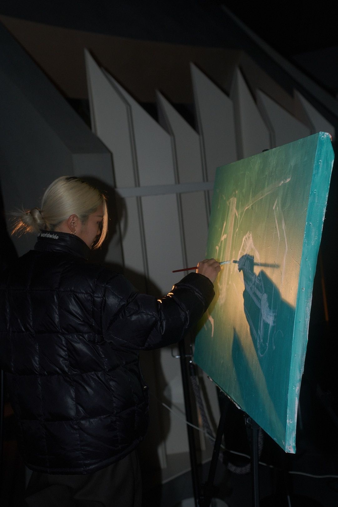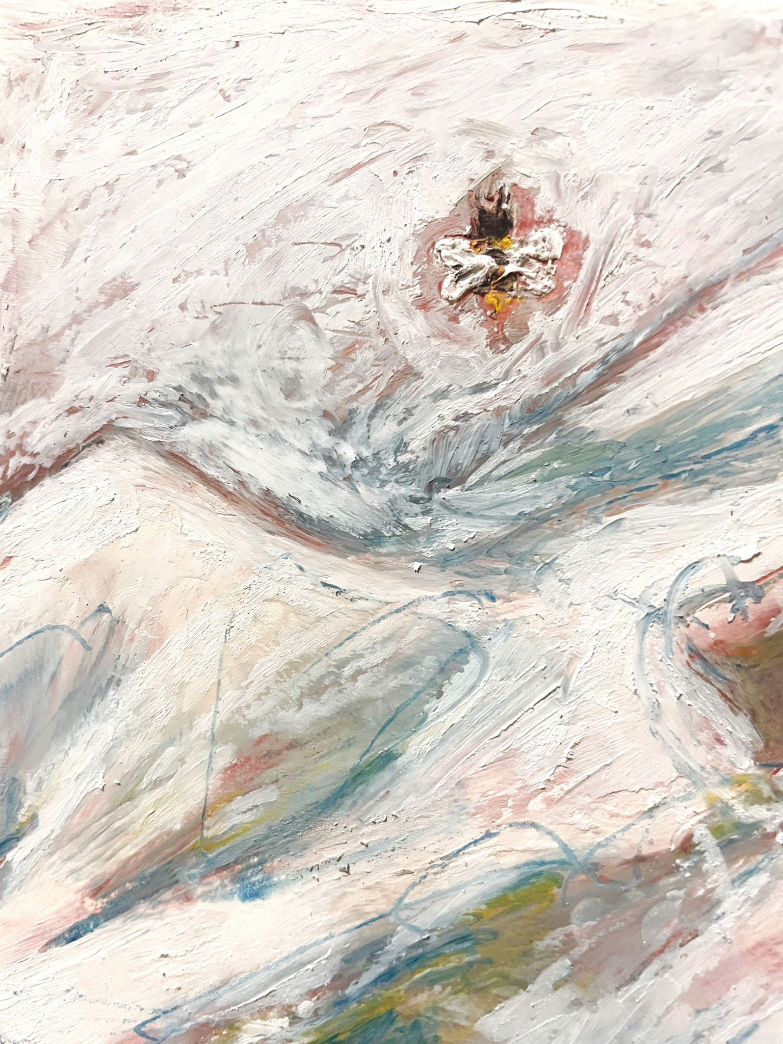 大きな雪山に向かって迷わず進んでいく一匹の蜂を描きました。