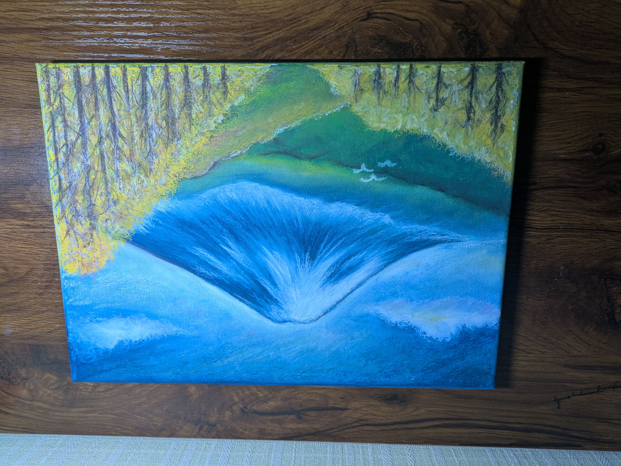 季節が変わる様子を感じながら富士山の姿を眺めるのが好きでして、緑から黄色へと変化していくグラデーションの色合いをイメージして描きました。
