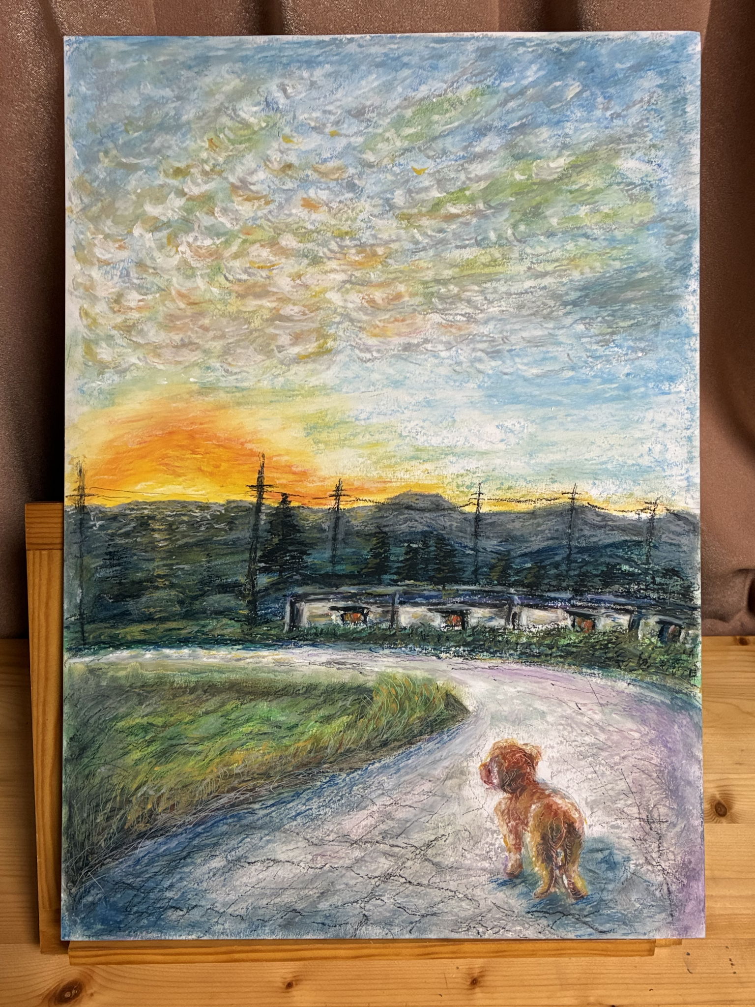 能登半島地震の後、多くの人が失い、前を向いて生きようとしている。仮設住宅の側を愛犬と歩く散歩道。過疎化が進む中でも変わらない自然の美しさがある。静かな時間の流れの中で秋の夕暮れに希望を見つけ、強く、優しく生きていきたい。そんな気持ちをこの小さな愛犬の背中に託しました。