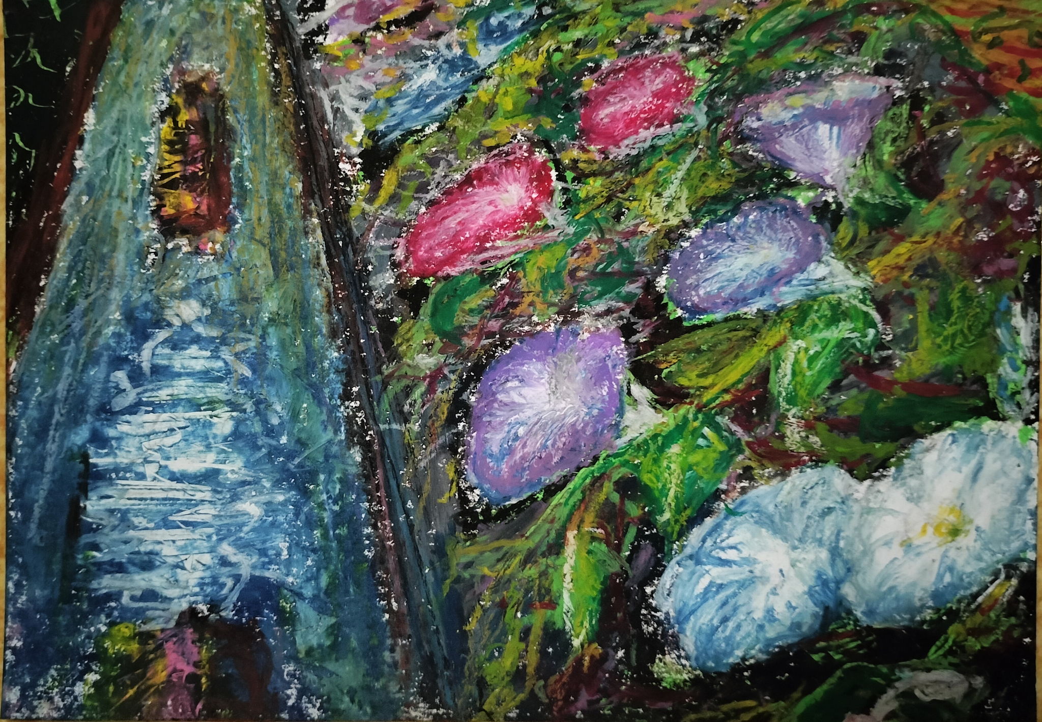 四季の猫屋敷9/32(小川の土手に咲いた朝顔)