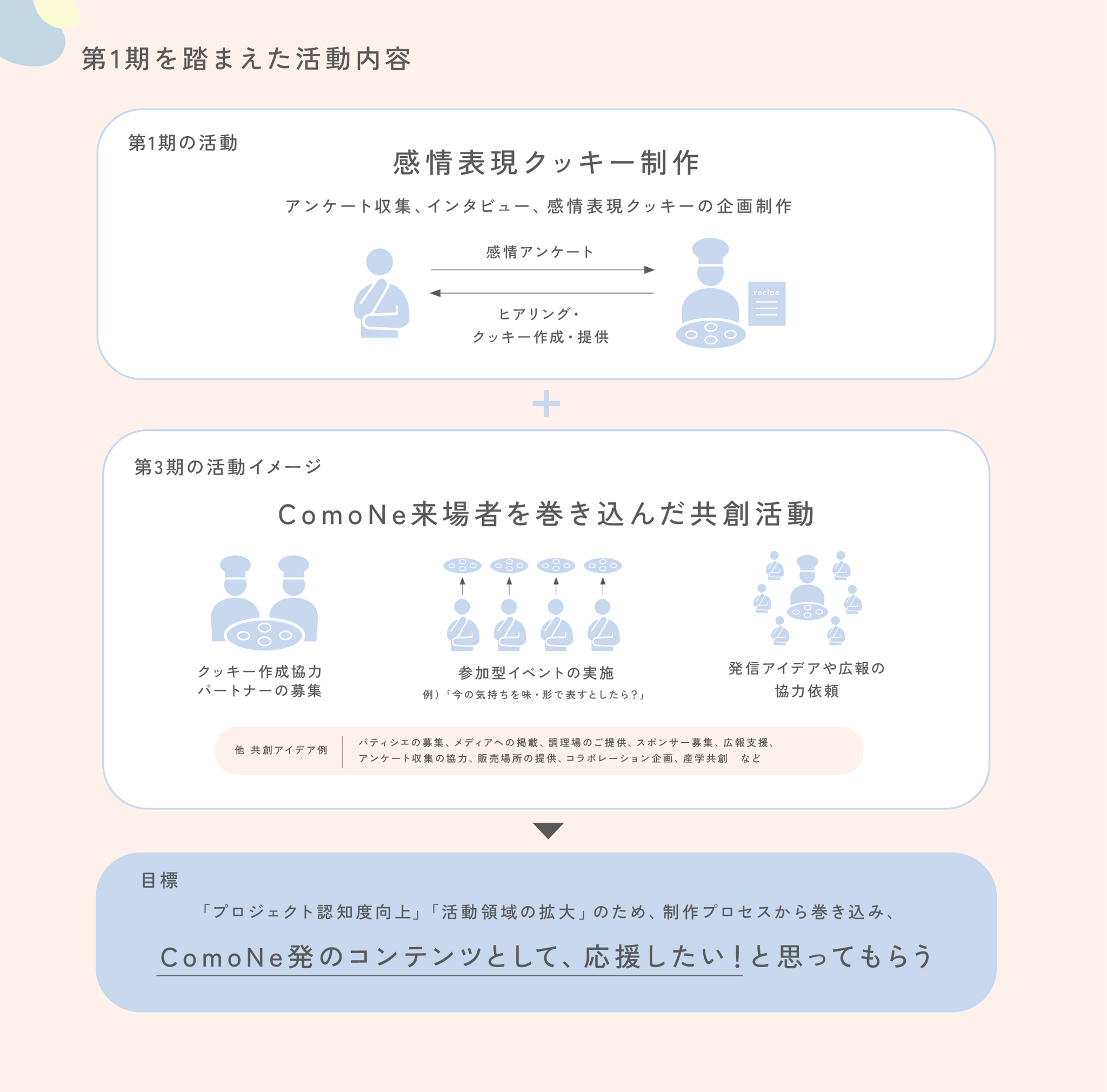 本プロジェクトは、企画・クッキー制作担当の齋藤とデザイナー中里の2名で活動をスタート。