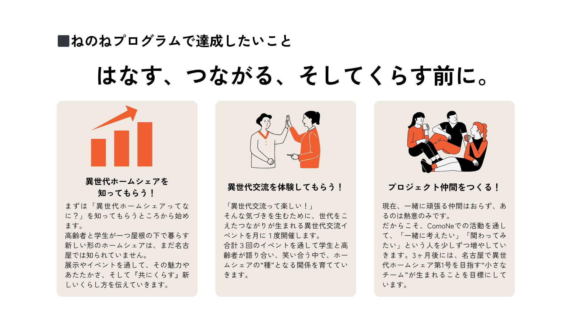 はなす、つながる、くらす、〜ComoNeから異世代ホームシェアを広めたい〜