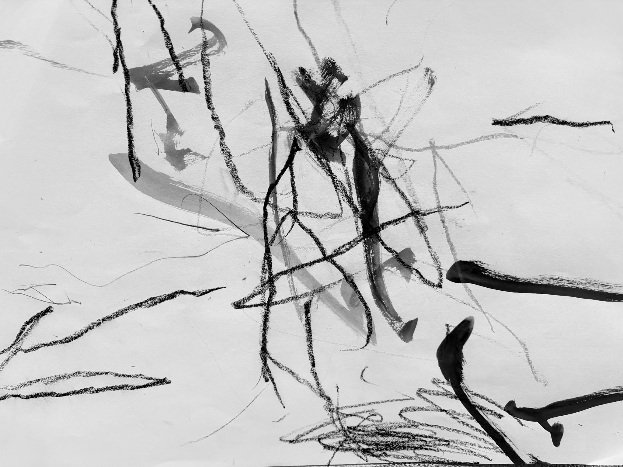 また、赤ちゃんの描いた線という「字の痕跡」に対してのみ、AIによって短いタイトルが付けられる。AIは創作主体ではなく、人間の意図を介さずに言葉を与える存在として用いられる。説明的な語や痕跡を想起させる言葉を避け、詩や物語の題名のような無関係な言葉を付すことで、鑑賞者は元となった行為や痕跡から一度距離を取り、あらためて自身の感覚で向き合うことになる。