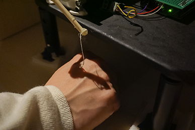 Applying materials to the back of the hand.