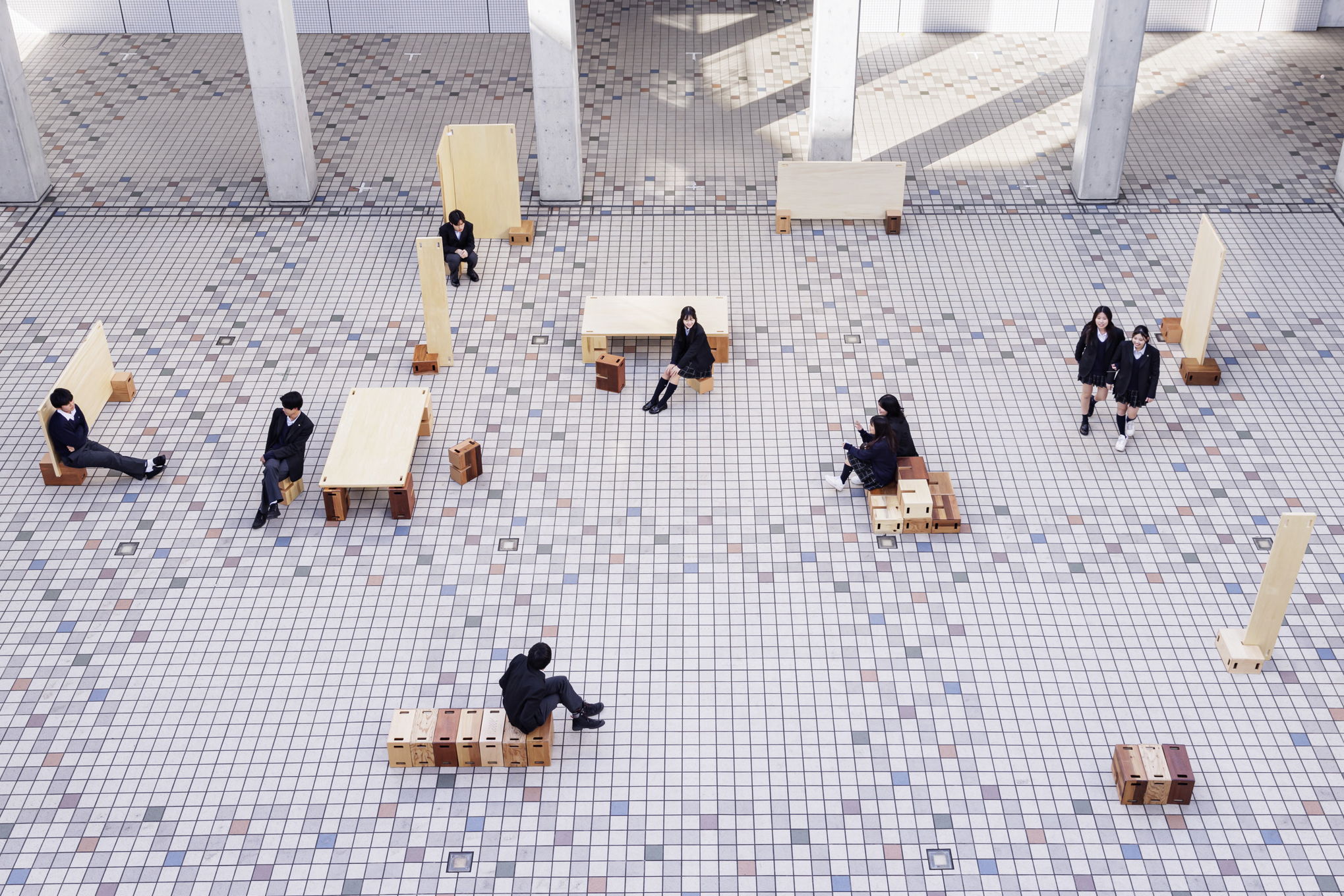 Kumooは、創造性を重視した教育への転換が進む学校環境のために設計された、体験型のコミュニケーションツールです。その名前は「一緒に組もう」という意味を持つ日本語の「くもう」に由来し、協働と創造性の重要性を示しています。Kumooは、まるでブロックのような1/10スケールのモデルから始まり、自由に組み立て可能な実寸大のプロダクトへと変化し、子どもたちの創造力を刺激し、新たな可能性を引き出します。さらに、学校近隣の木材業者から出る端材を再利用して作られており、持続可能で環境に配慮したデザインを実現しています。