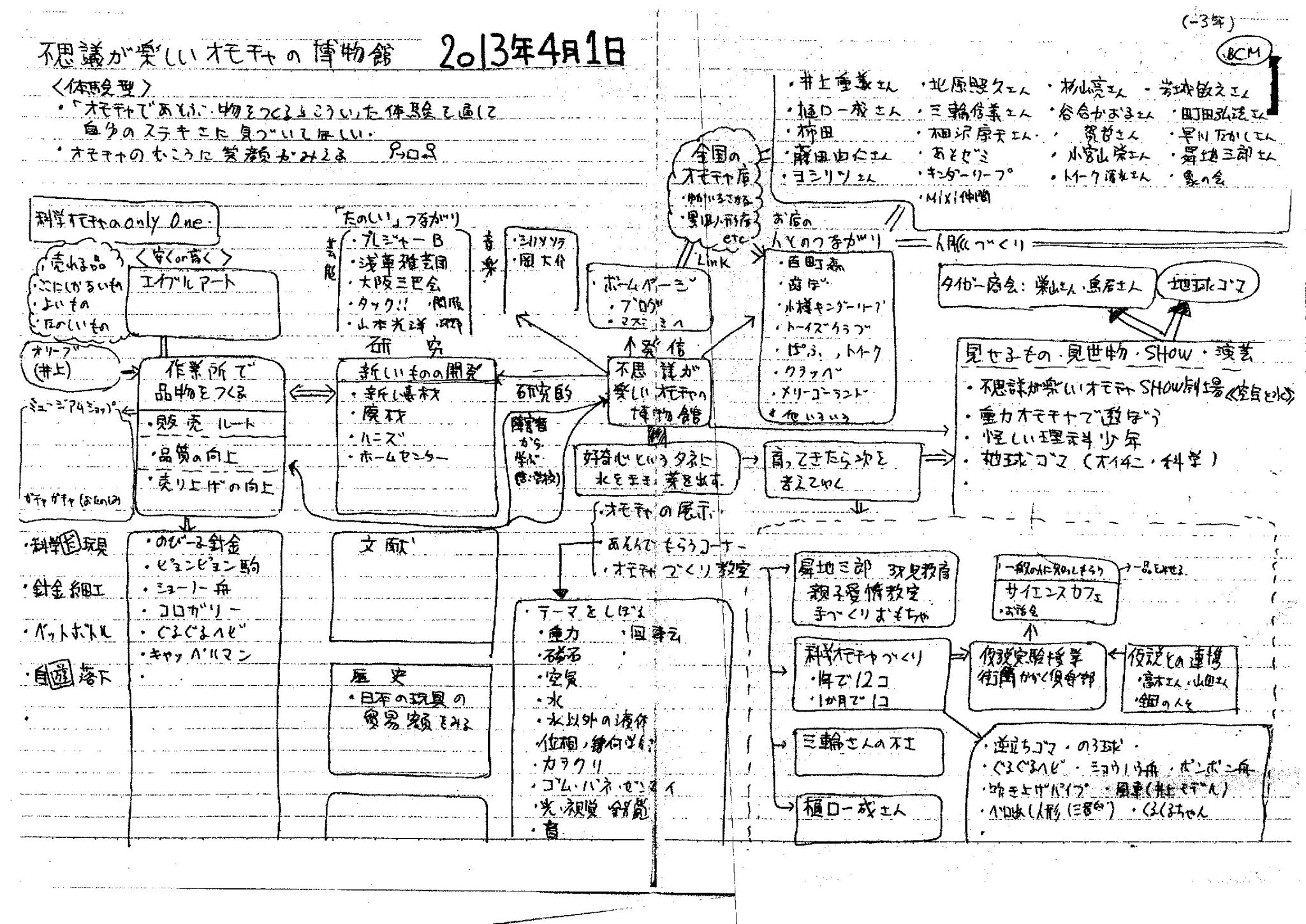 添付画像04は2013年の4月1日(エイプリルフールのウソ)としてまだ何もでき上っていない「不思議が楽しいオモチャの博物館」でやりたいことを「妄想」もまじえながら書き連ねたものです。このうちいくつかは達成できているものもあります。正直「ねのねプラン」そのものがどのようなものかわかりません。自分の持っている様々な考えをぶつけながら新しい「楽しい」が出来上がるといいなと思っています。
