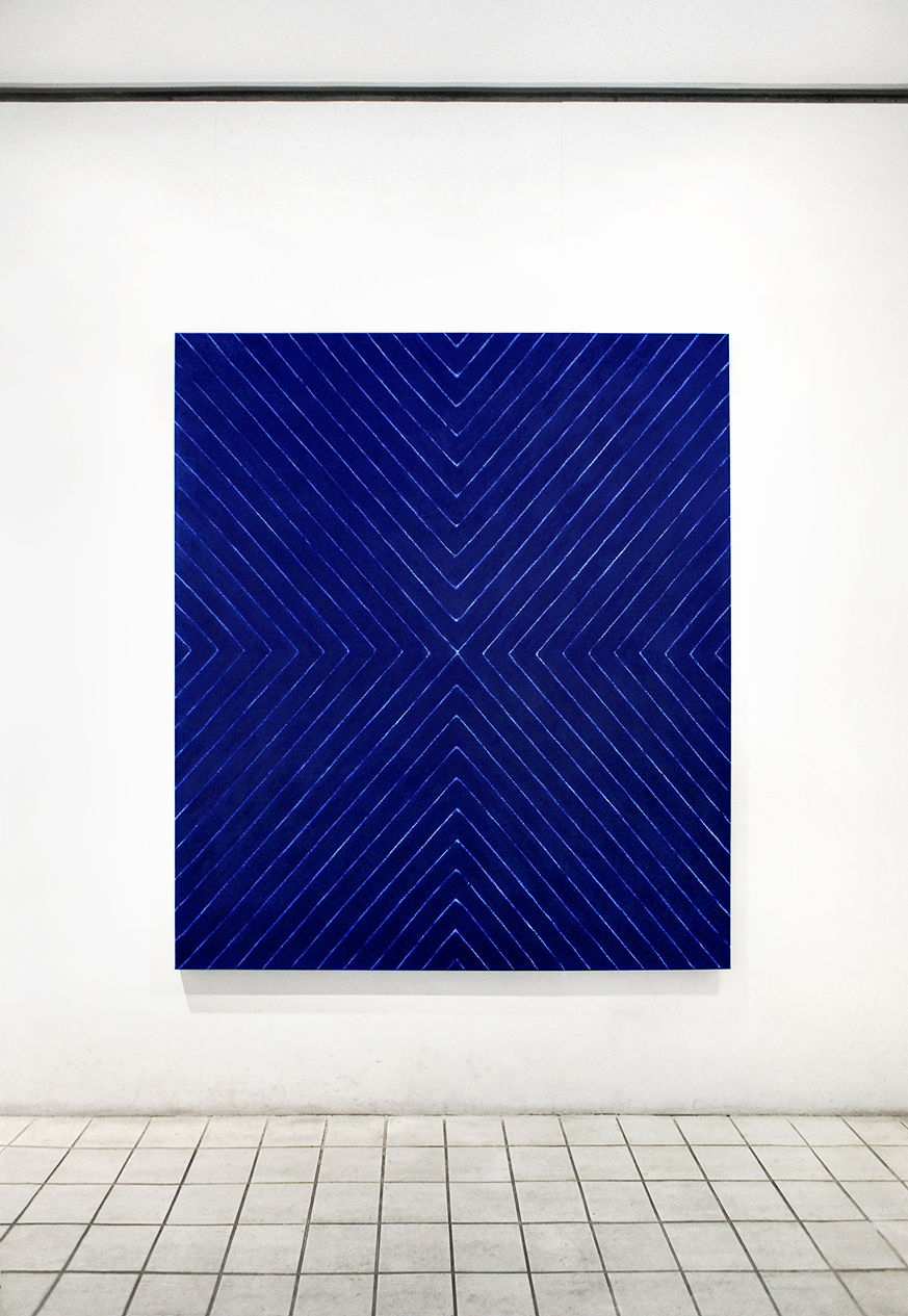イヴ・クラインのIKBとフランク・ステラのストライプを合わせると、どのようなものが生まれるか興味がわいて形にしました。