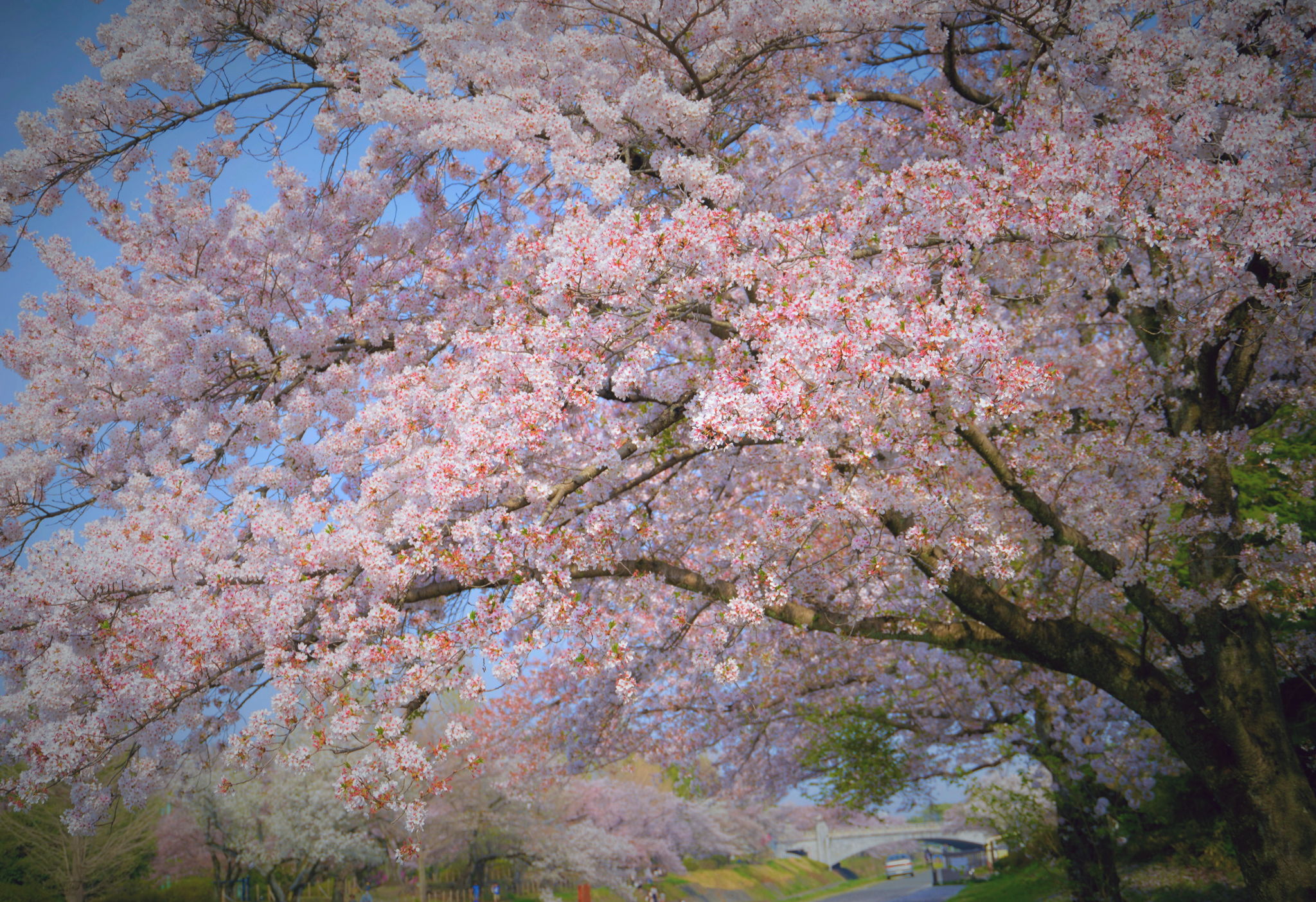 A cherry tree of the picture which blooms casually in this riverside is also one on the route of the travel.