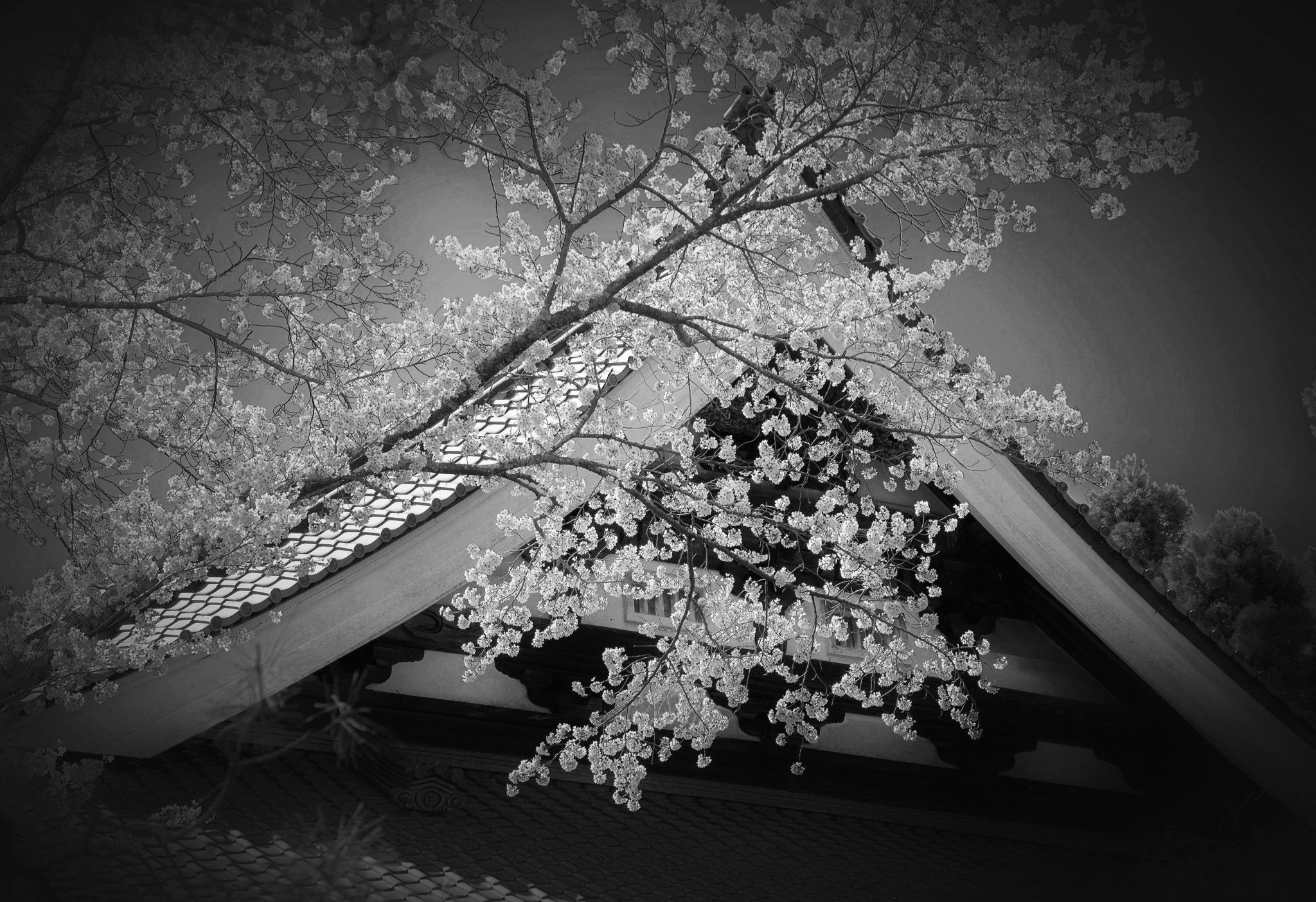 The precinct where the sign of the person cries when I enter a temple gate, a cherry tree is a flower.