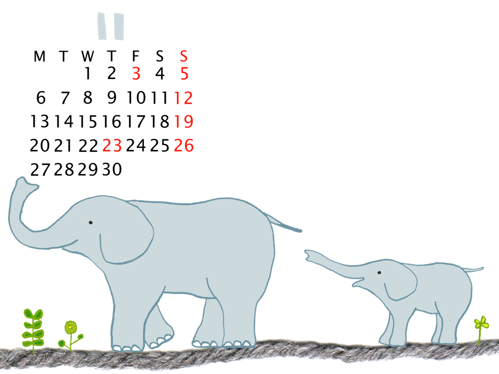 11月のカレンダーつき壁紙その2です♪