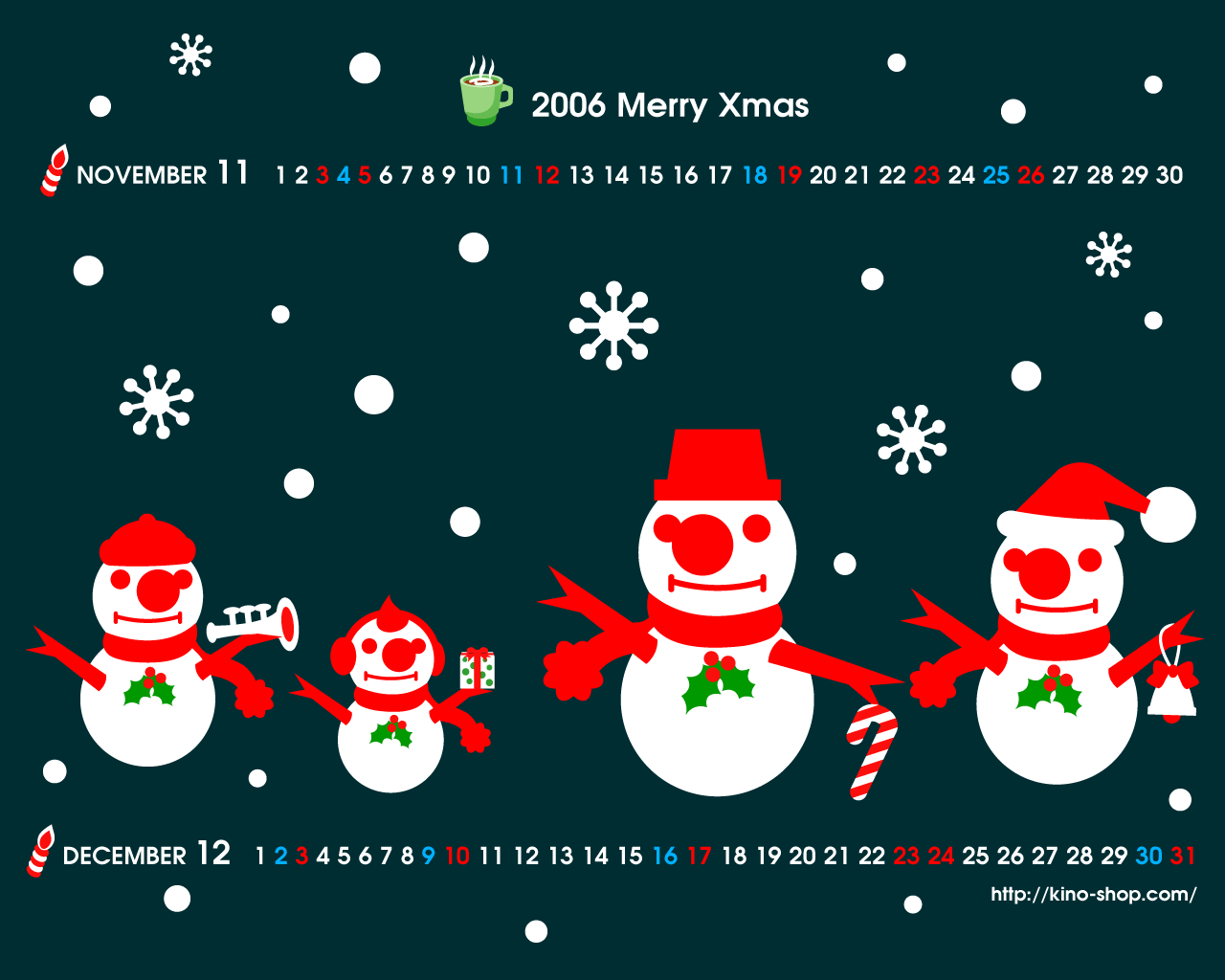 クリスマス壁紙カレンダーです。