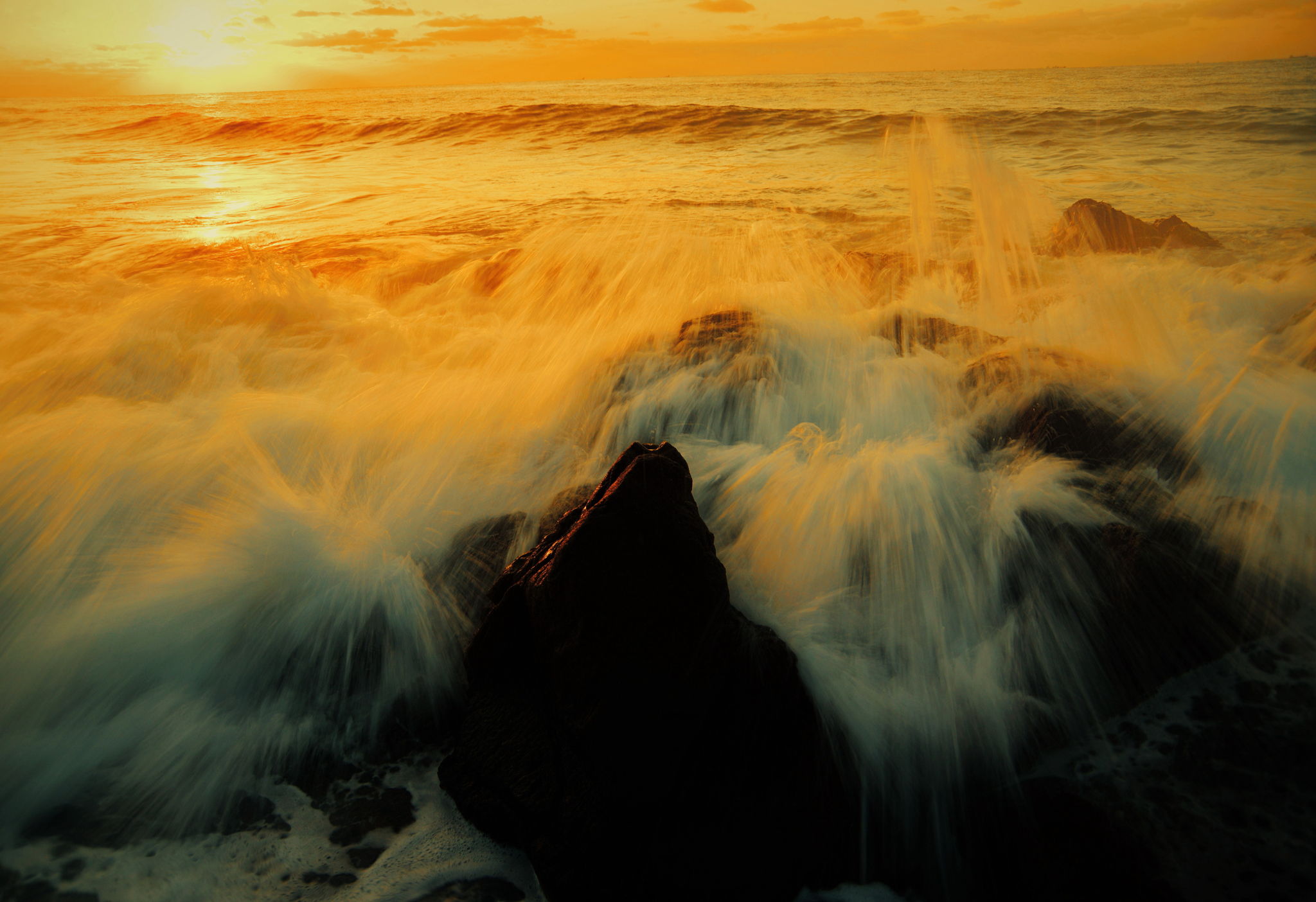 The tone of the wave and spray of a wave are pleasant and are my photography tension rhythmically.