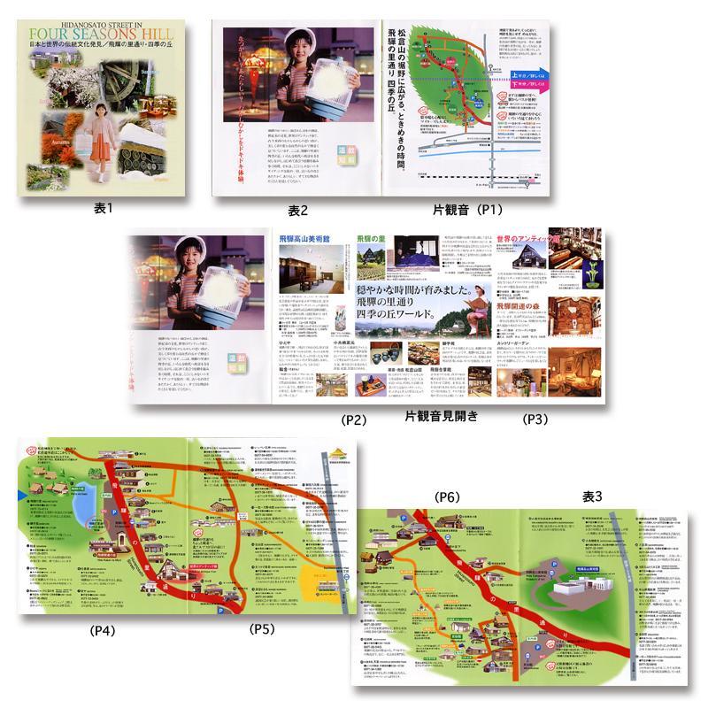 さまざまな文化・観光施設を中心に店舗や宿泊施設が並ぶ地域を紹介するパンフレット。地図中の建物のイラストも制作。