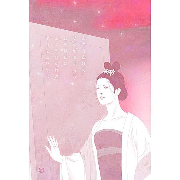 「朝戸あけてながめやすらむ たなばたは あかぬ別れの空を恋ひつつ」という紀貫之の歌をもとに描きました。