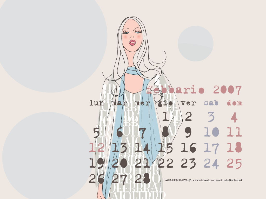 2月のカレンダー付き壁紙です。サイズは1024X768。