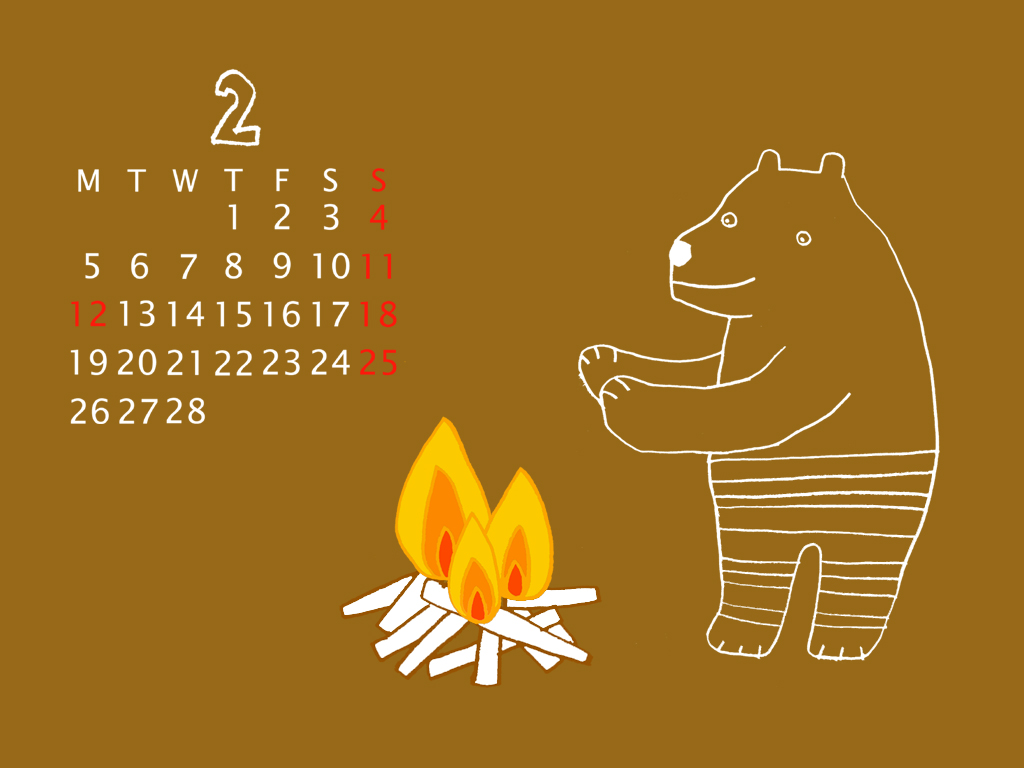 2月のカレンダーつき壁紙その2です♪ チョコレート色のバックバージョンです(1024×768)