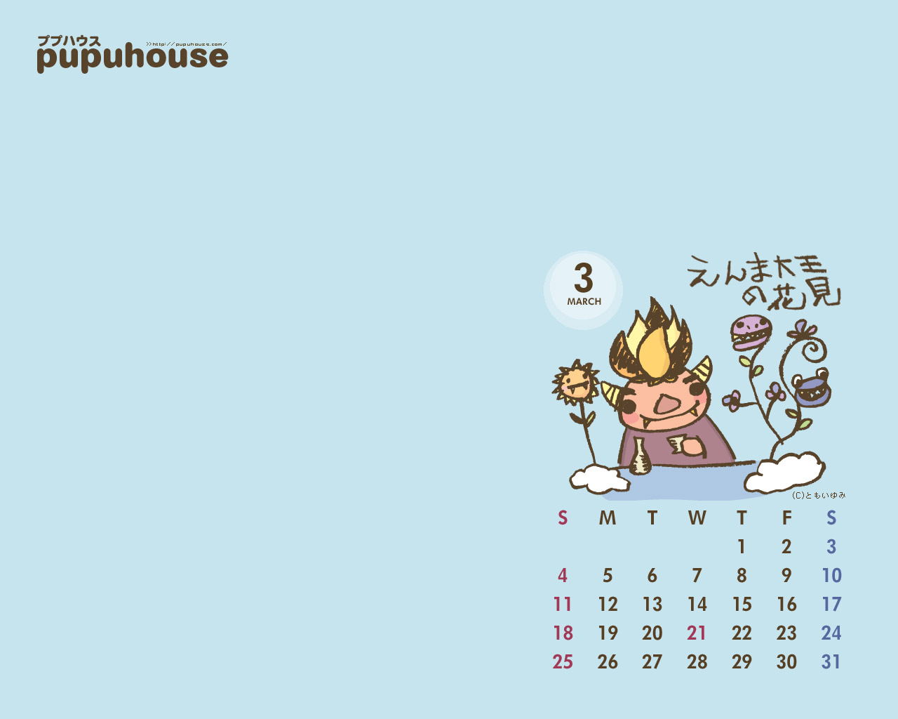 【pupuhouseカレンダー壁紙3月】1280×1024(おおきめちゃん♪)