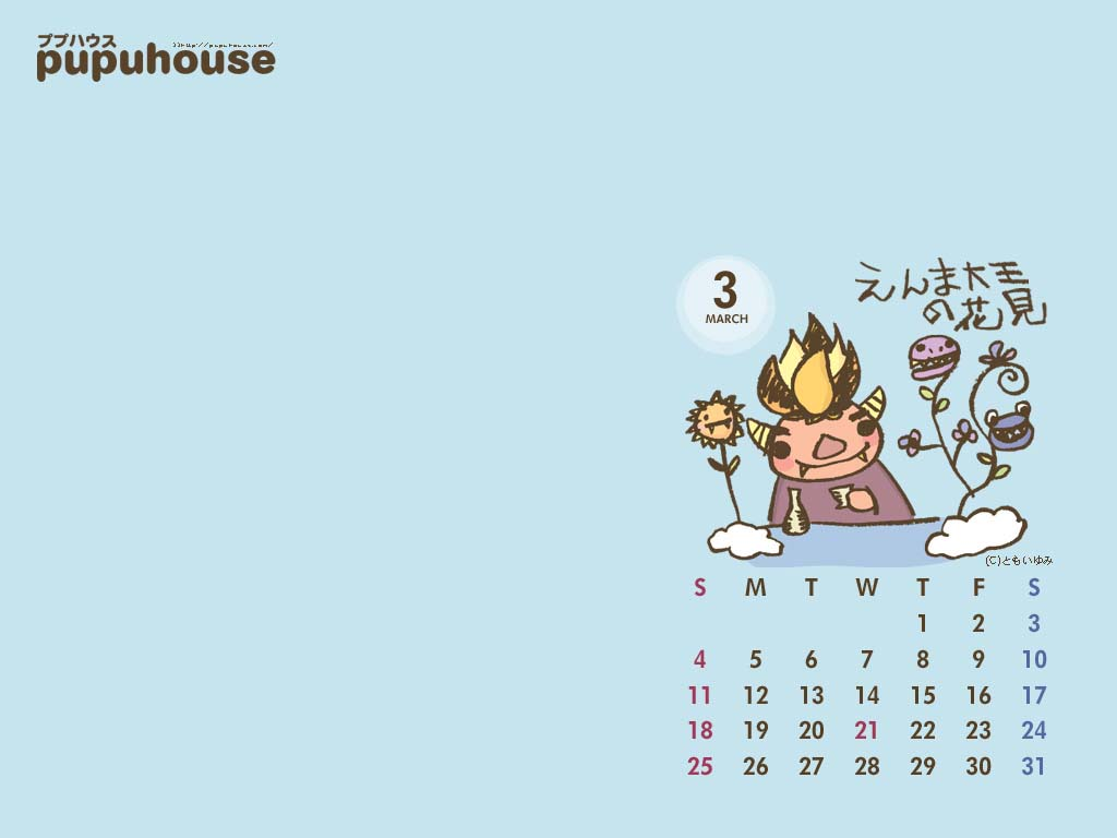 【pupuhouseカレンダー壁紙3月】1024×768(ふつうめちゃん♪)
