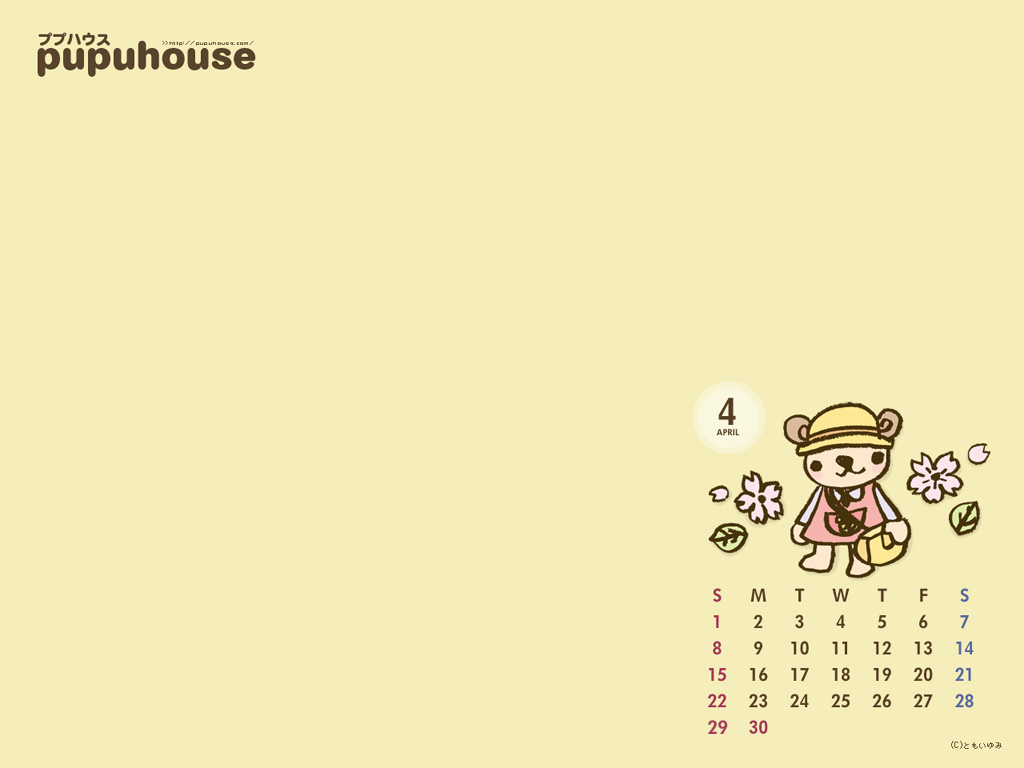 【pupuhouseカレンダー壁紙4月】1024×768(ふつうめちゃん♪)