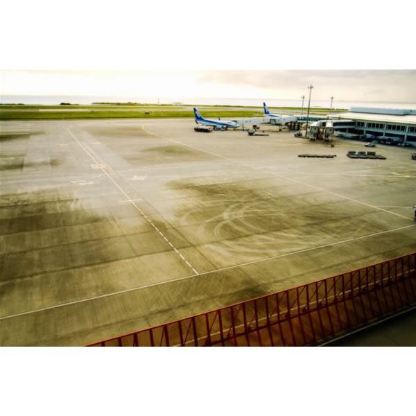 那覇空港には、飛行機がドリフトしたかのようなタイヤ痕がたくさん。