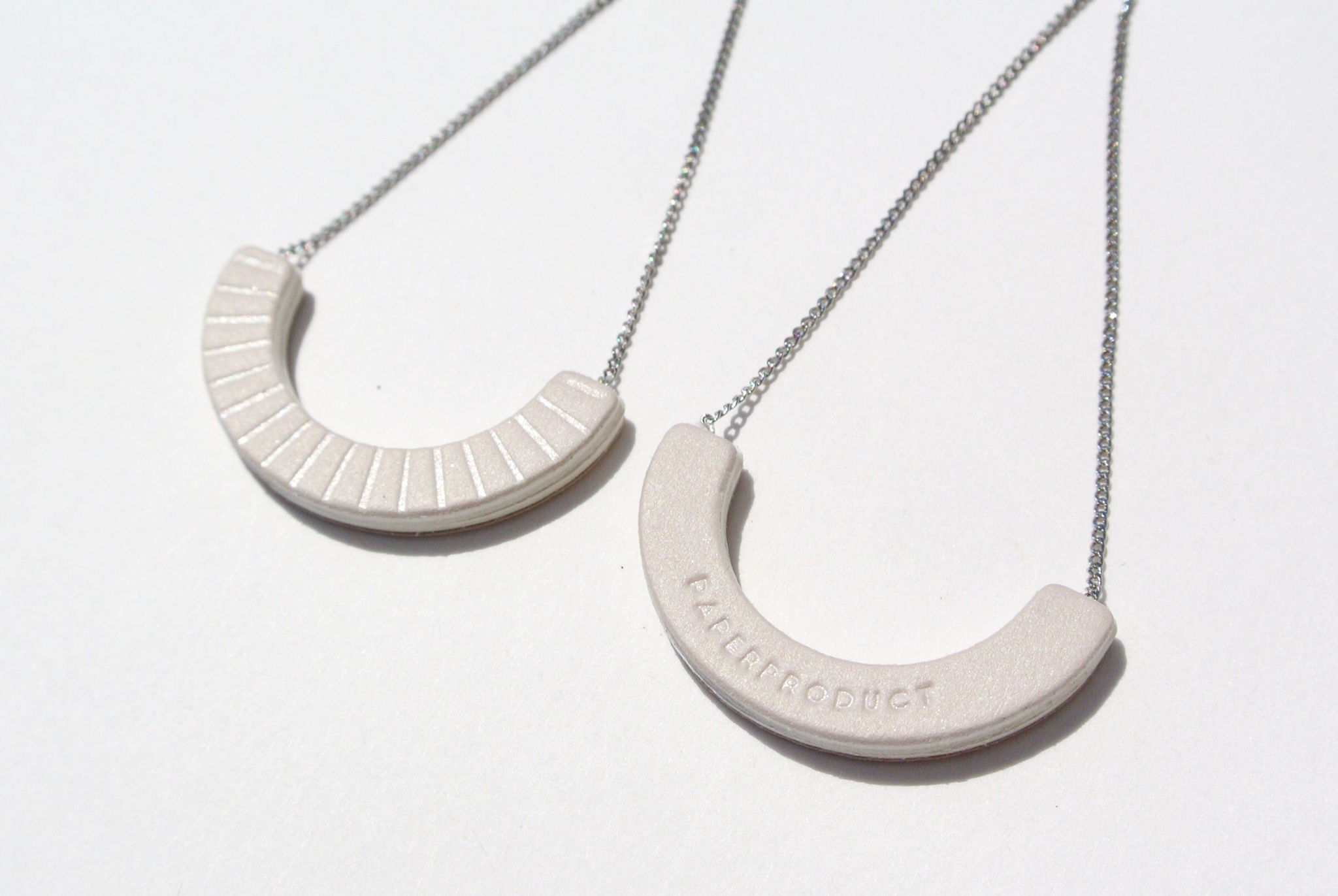 紙ならではの優しい風合いと色味、そこに紙加工会社の技術を加え、存在感がありながら、軽いつけ心地の新感覚アクセサリー。