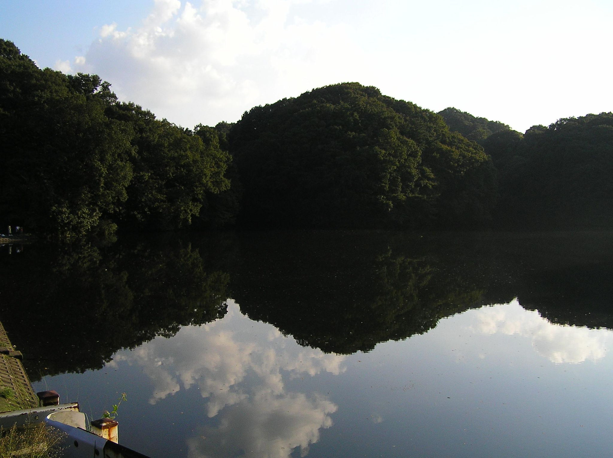 鏡面仕上げのような池。大阪、府民の森にて