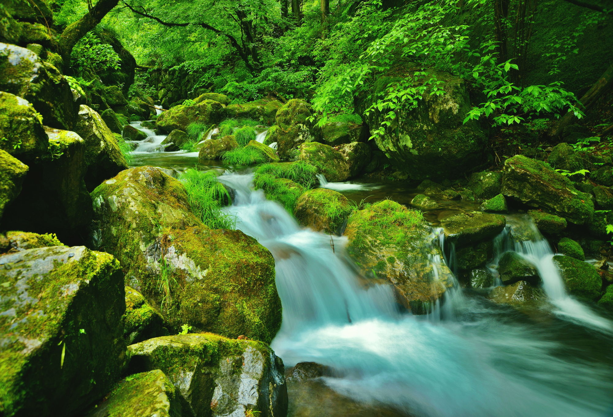 The spring when the trees in a forest of the entourage who surround a valley stream are also this year, oh.