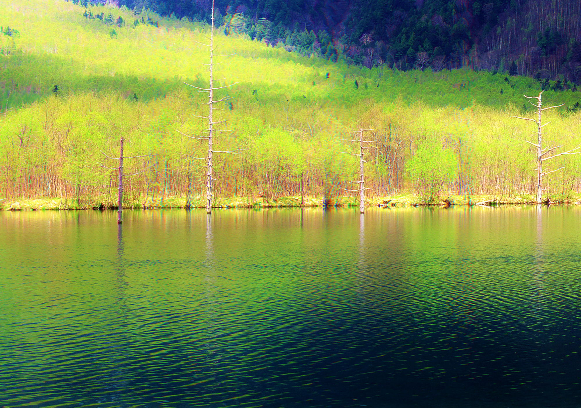 芽吹く緑の大正池-Sprouting green Taisho-pond