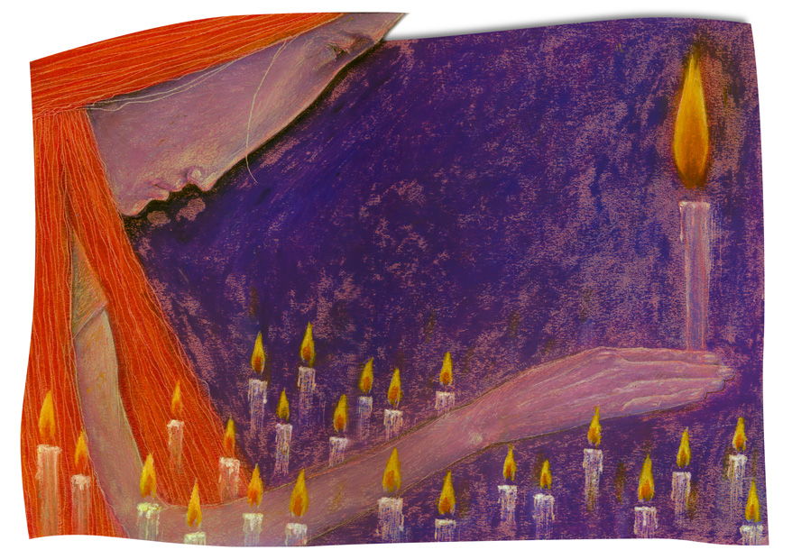 16見開き。鉛筆画をスキャンしてPhotoshop、Painterで着彩、