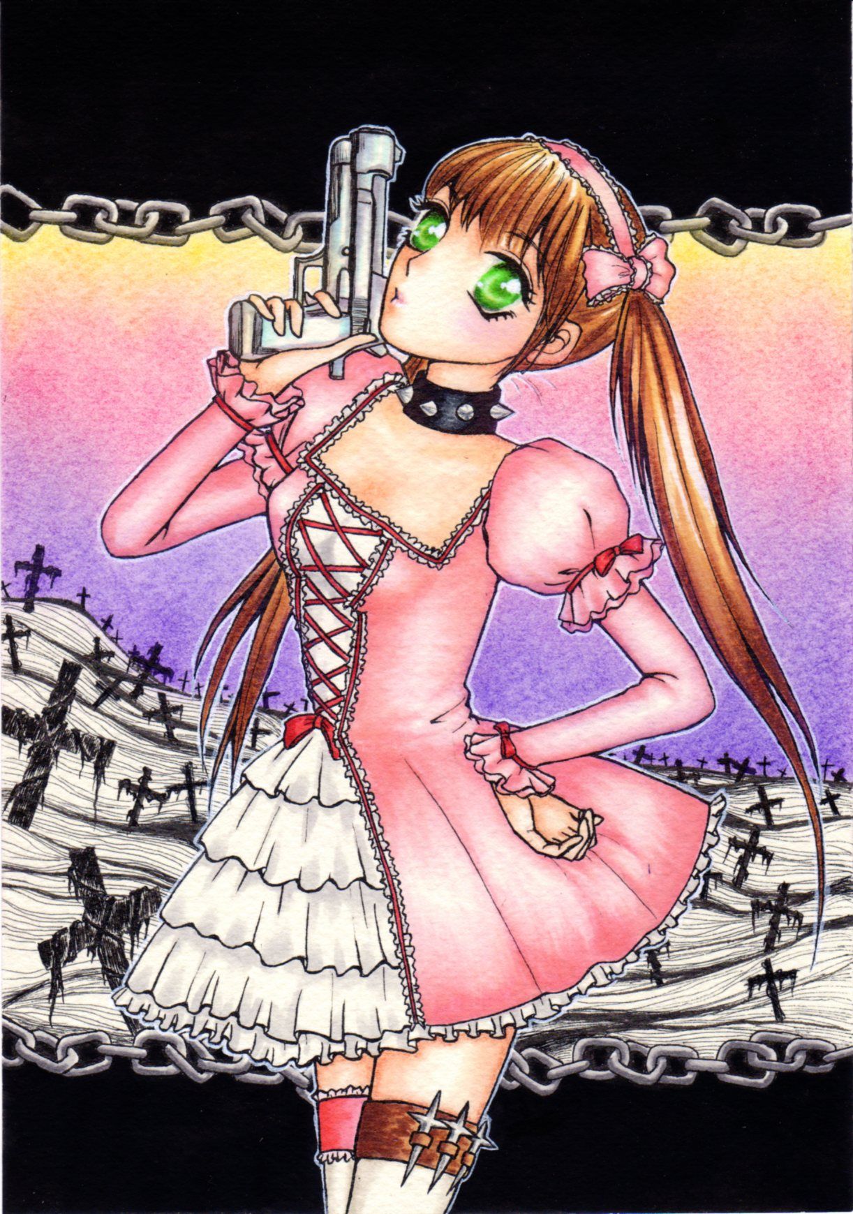 オリジナルキャラクターのアリスです。モンスターやクリーチャーハンターのロリータファッションの女の子、という設定です。