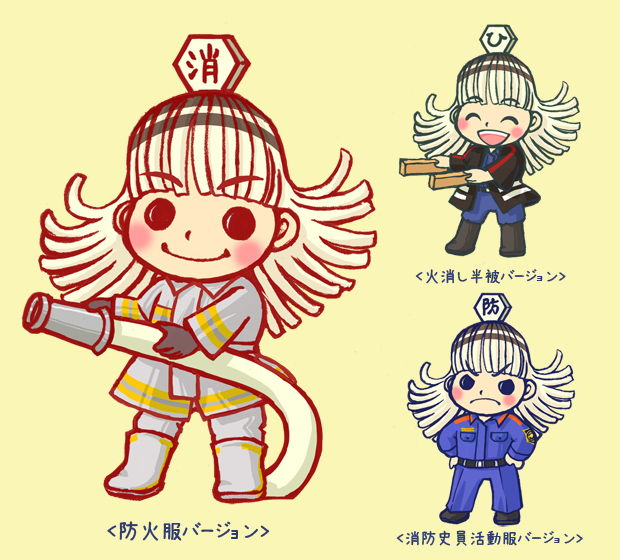 元気で機転が利く女の子。火消しが使用していた『纏(まとい)』をモチーフにしています。凛々しい眉と大きな口で消防にかける強い決意を表わし、の子にすることで、女性の社会進出を思わせ、低迷ぎみな女性の支持の向上を狙っています。