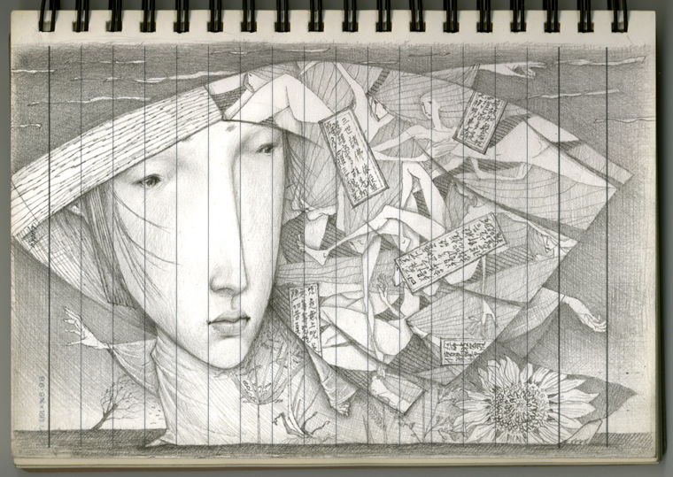 ブログでもアップした画像をポートフォリオにもアップするなんて、随分手抜きですね。怠け者ですか。いじいじしているのでしょう。迷いも多いし、その場しのぎの性格なのかなぁ。いやいやそんなことはどっちでもいいや。これはLuckyというところが出している分厚い表紙、90sheets、B6のノートブックです。鉛筆はHBと4B。doodleは僕にとって大切な作品になりそう。僕を原情景に連れ戻してくれそう。僕は古い絵が好きなのかも。イラストレーターやってて古い絵が好きってどうなのかなと思うけど。徹底したらそれでいいのかも知れないけど。なんだかスタイルとかそんなものとして古い絵を考えられない。スタイルではなくて古い絵が好きなのかも。描いたものは自分から離れて初めて生き始めるから、一日も早くこれ誰の絵?という気持ちでこれらの作品を眺めていたい。これからずーっと増え続けて行くと思います。