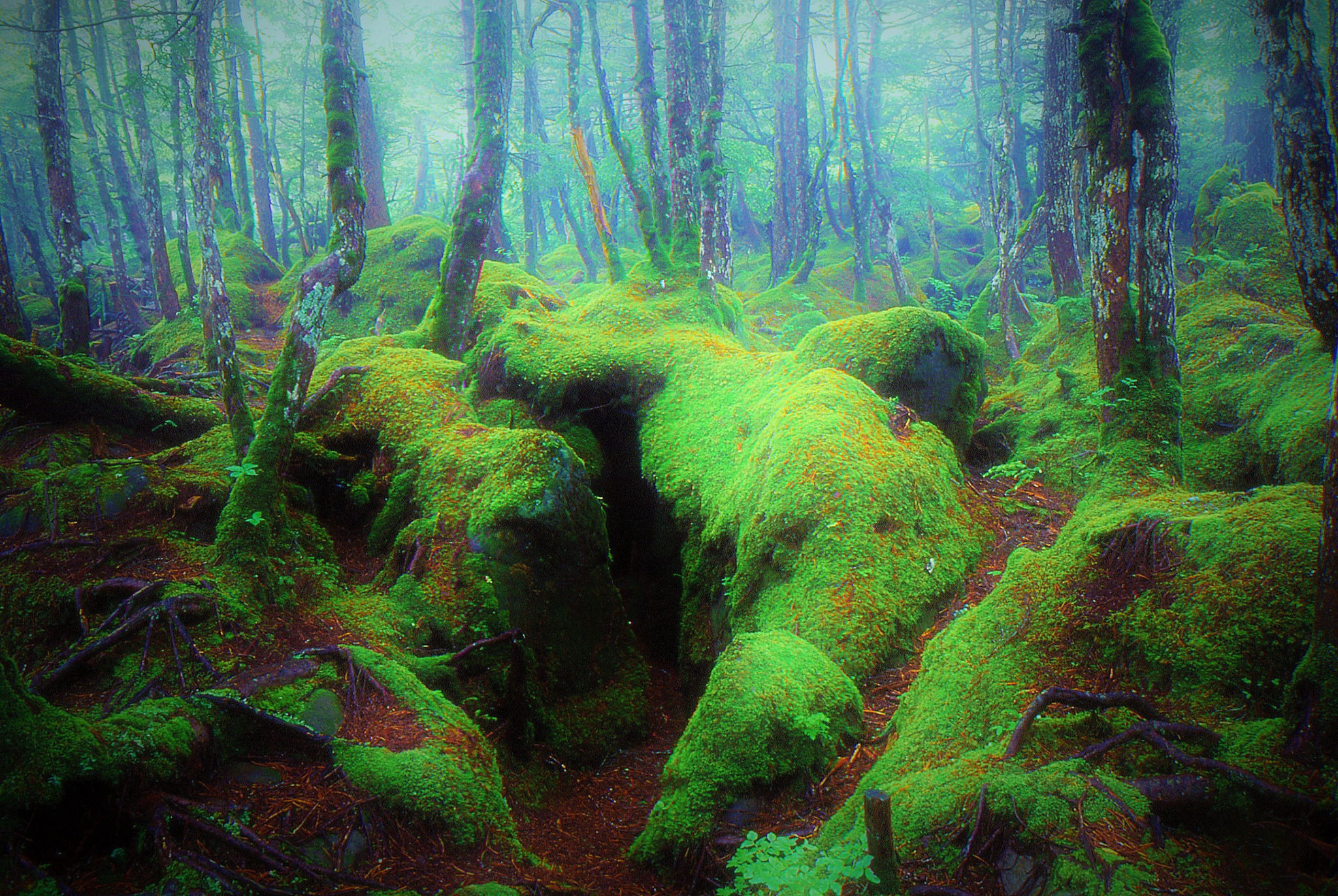 日本の中でも最も苔の美しい原生林の一つとして知られるこの森は