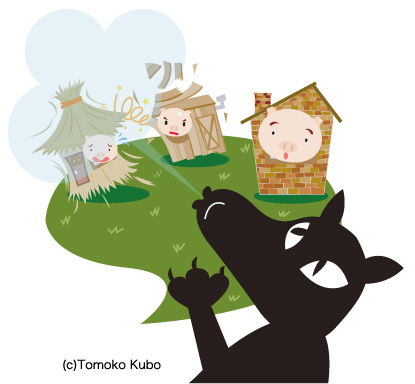 童話の三匹の子ブタの一場面を描きました。